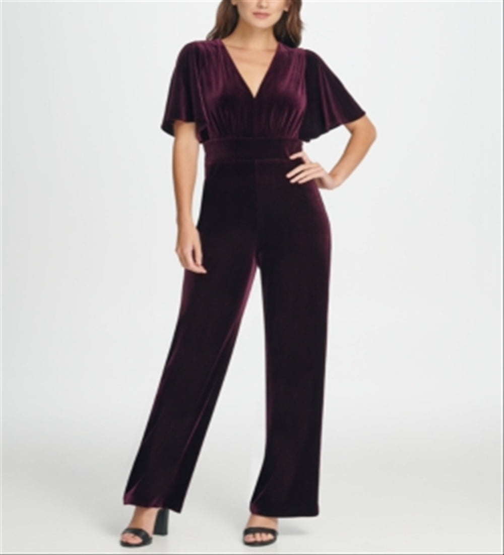 DKNY Women's Zippered Bell Sleeve V Neck Wide Leg Party Jumpsuit Purple Size 12