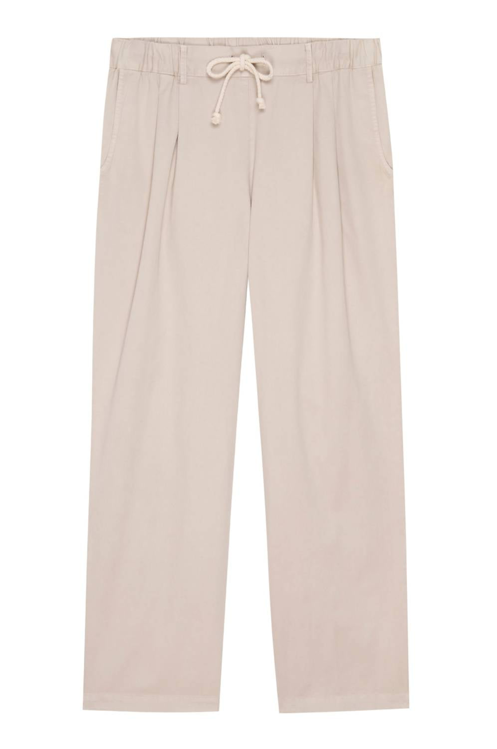 The Chino Drawstring Crop Pant by DONNI. offers effortless style in solid stone, crafted for comfort with 100% cotton. These trousers are proudly made in the USA and feature convenient pull-on styling with an adjustable drawstring at the waist. Designed with side slant and back pouch pockets, these relaxed fit pants showcase a mid-rise and straight leg silhouette. Care is simple with machine wash instructions.