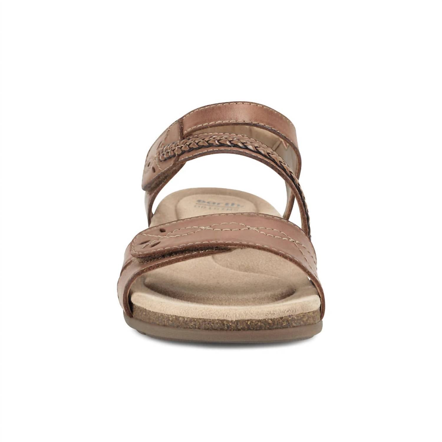 Step into sustainable elegance with the Women's Bria Sandals by EARTH in Alpaca. Crafted from premium leather, these sandals are designed with two hook and loop adjustable straps for a customized fit and feature a cushioned, memory foam footbed that provides superior arch support. The soft footbed cover, made with 82% recycled plastic bottles, ensures moisture-wicking comfort. With a practical heel height of 1.5" and slip resistance, these sandals are your perfect bohemian-inspired summer staple.