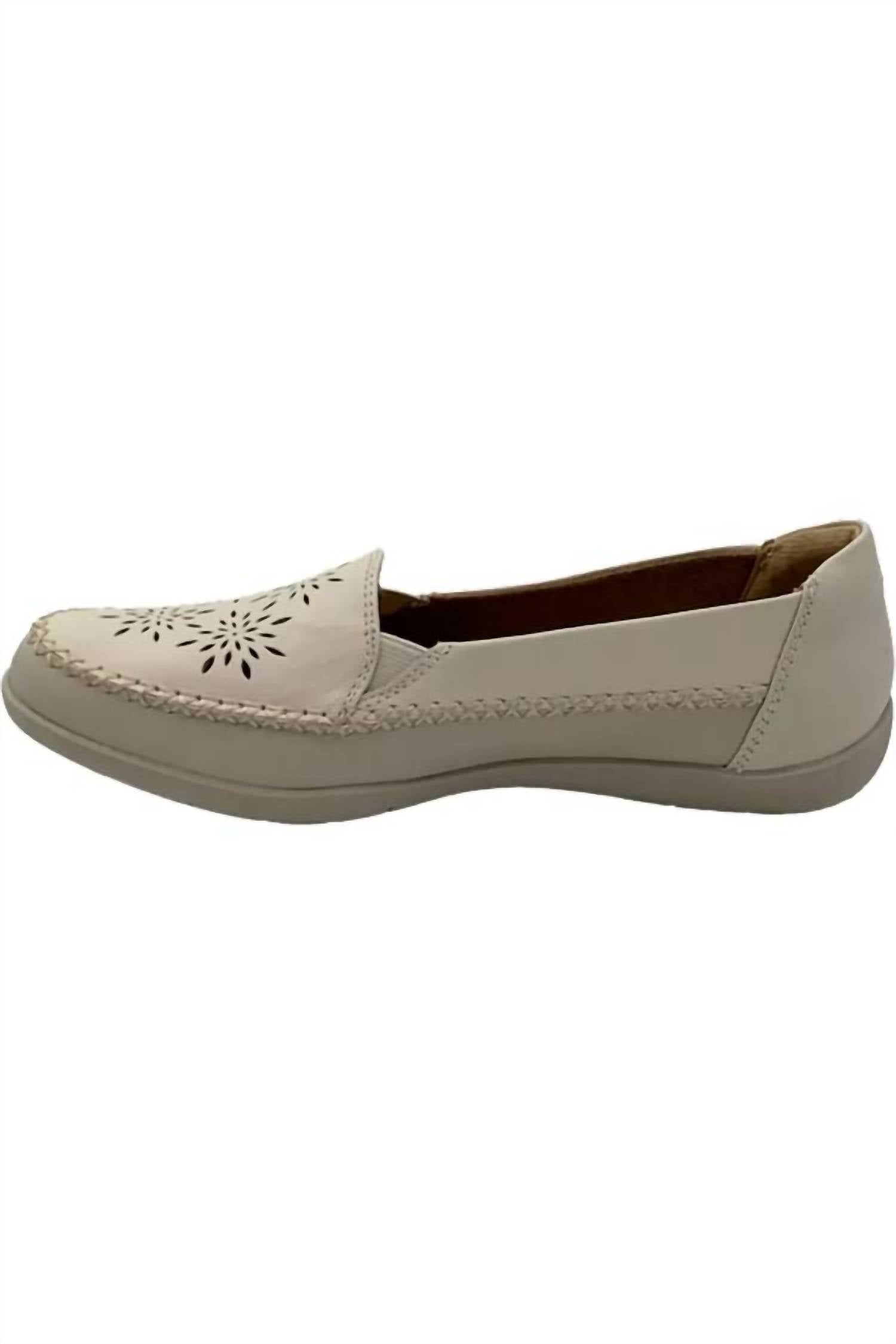 A preppy yet feminine take on the classic loafer. Step out in style with the Women's Freya Shoes by EARTH, perfectly crafted for modern women seeking comfort and elegance. Made with a manmade upper material in a solid sand white color, these flats feature a slip-on style and a round toe design. Ideal for casual outings, the flat heel ensures all-day comfort without compromising on style. The sophisticated leather construction adds a touch of luxe to your wardrobe essentials.