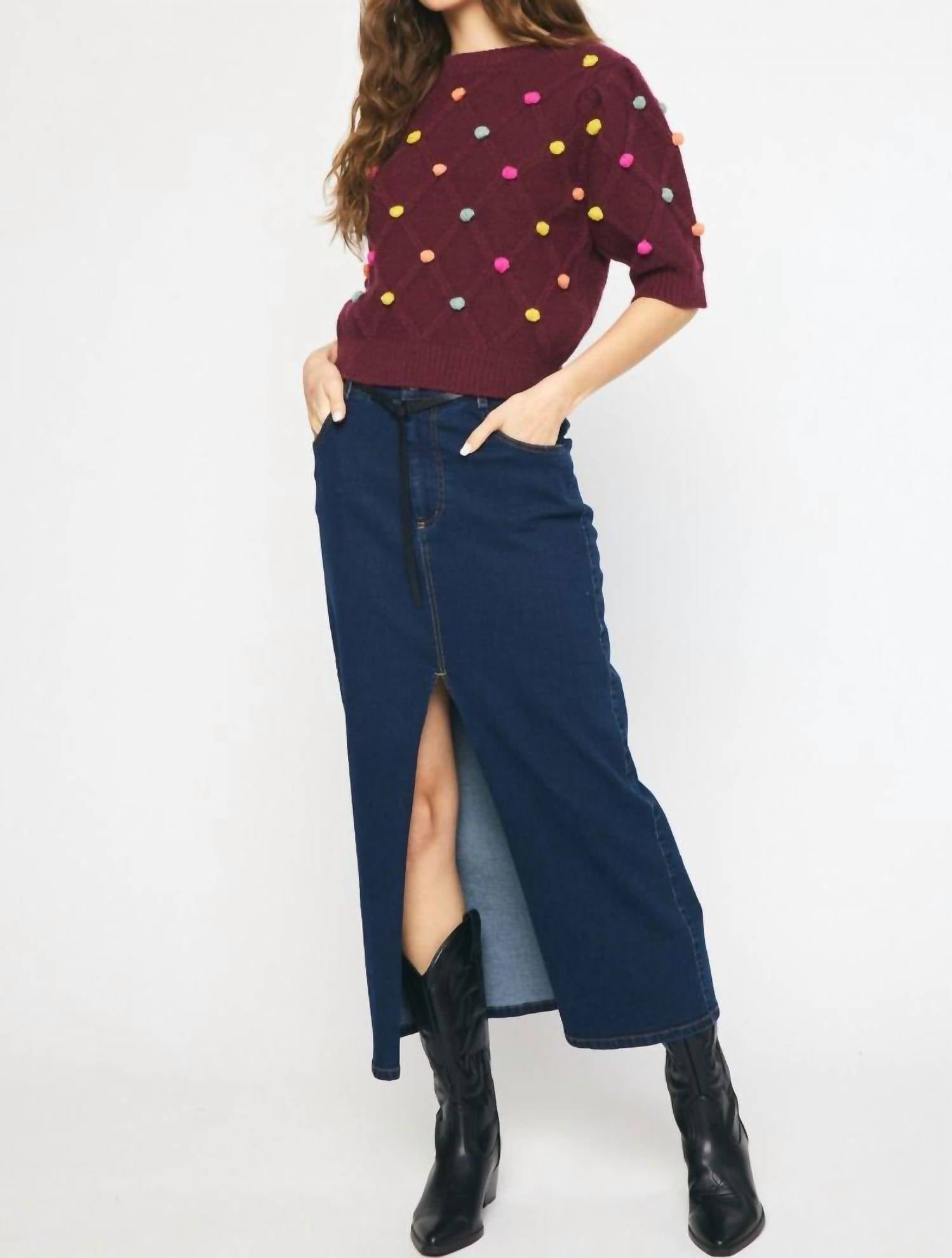 The ultimate go-to sweater, expertly crafted to provide the perfect combination of warmth and style. Its classic design and soft fabric make it a must-have addition to your wardrobe.3D pom pom half sleeve cropped knitted sweater featuring ribbed hem. Unlined. Knit. Non-sheer. Lightweight.