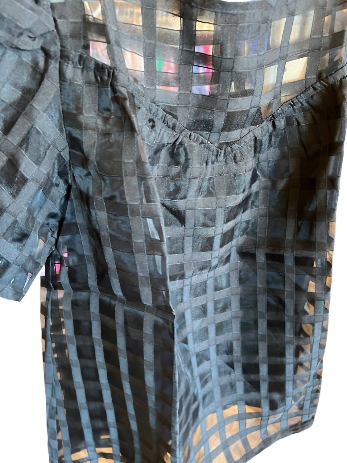 Pair this with your favorite jeans and slides for your next girls night out.The Puff Top from Entro features a ruffle hem and sheer collar, with puff sleeves and a flared, loose fit. This short-sleeve top is made from non-stretch woven fabric for a lightweight, elegant look. Crafted from 100% polyester, it's best cared for with hand washing or professional dry cleaning.