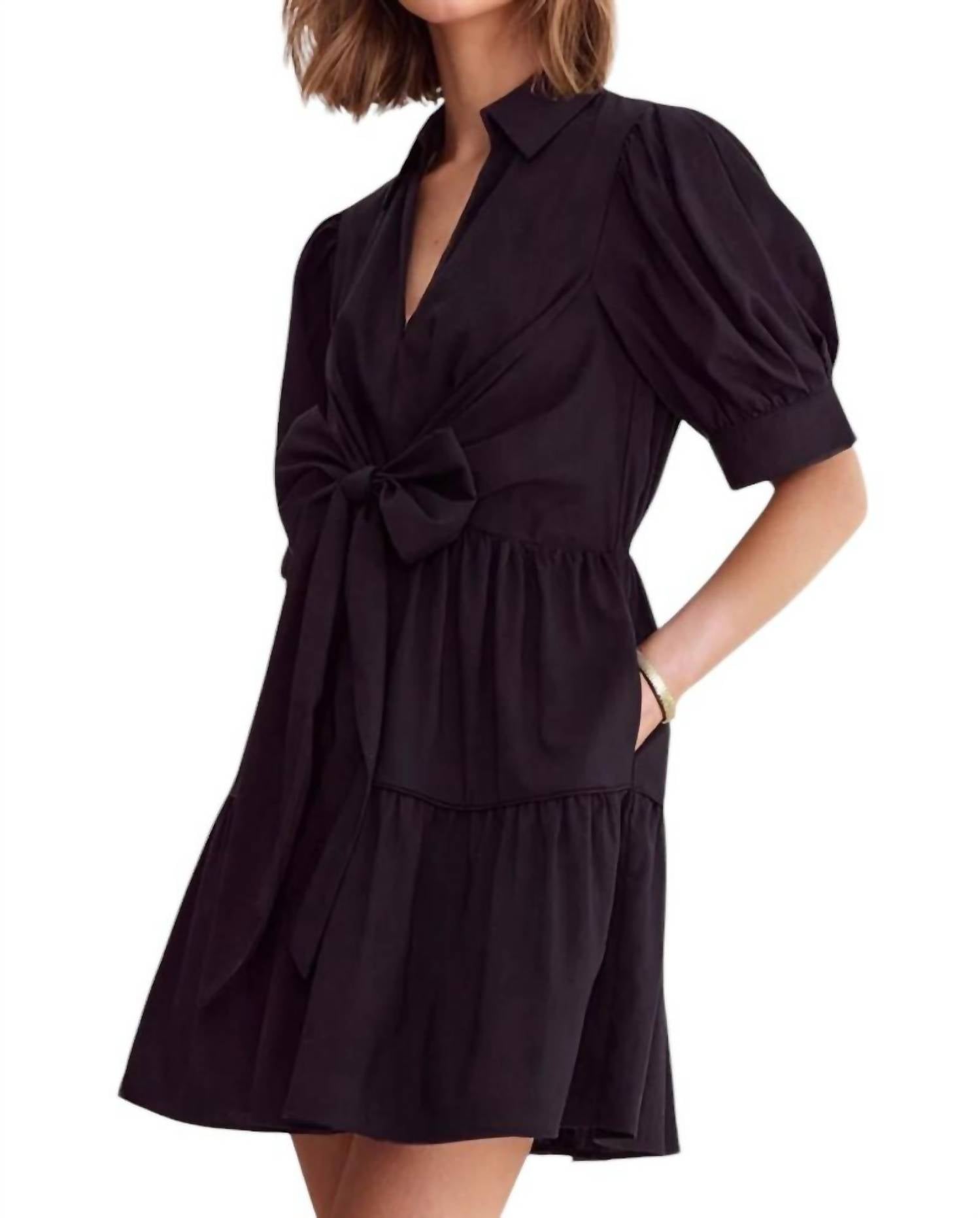 The perfect mini dress for those warmer months. Introducing the Victoria Front Bow Mini Dress by Entro, a chic wardrobe addition in timeless black. This dress showcases short tapered puff sleeves and a charming front coquette bow, with the practicality of side pockets. Made from a blend of 54% Rayon, 40% Nylon, and 6% Spandex, it features a pull-on closure. Imported with care instructions to hand wash cold and line dry, this dress is perfect for any occasion.