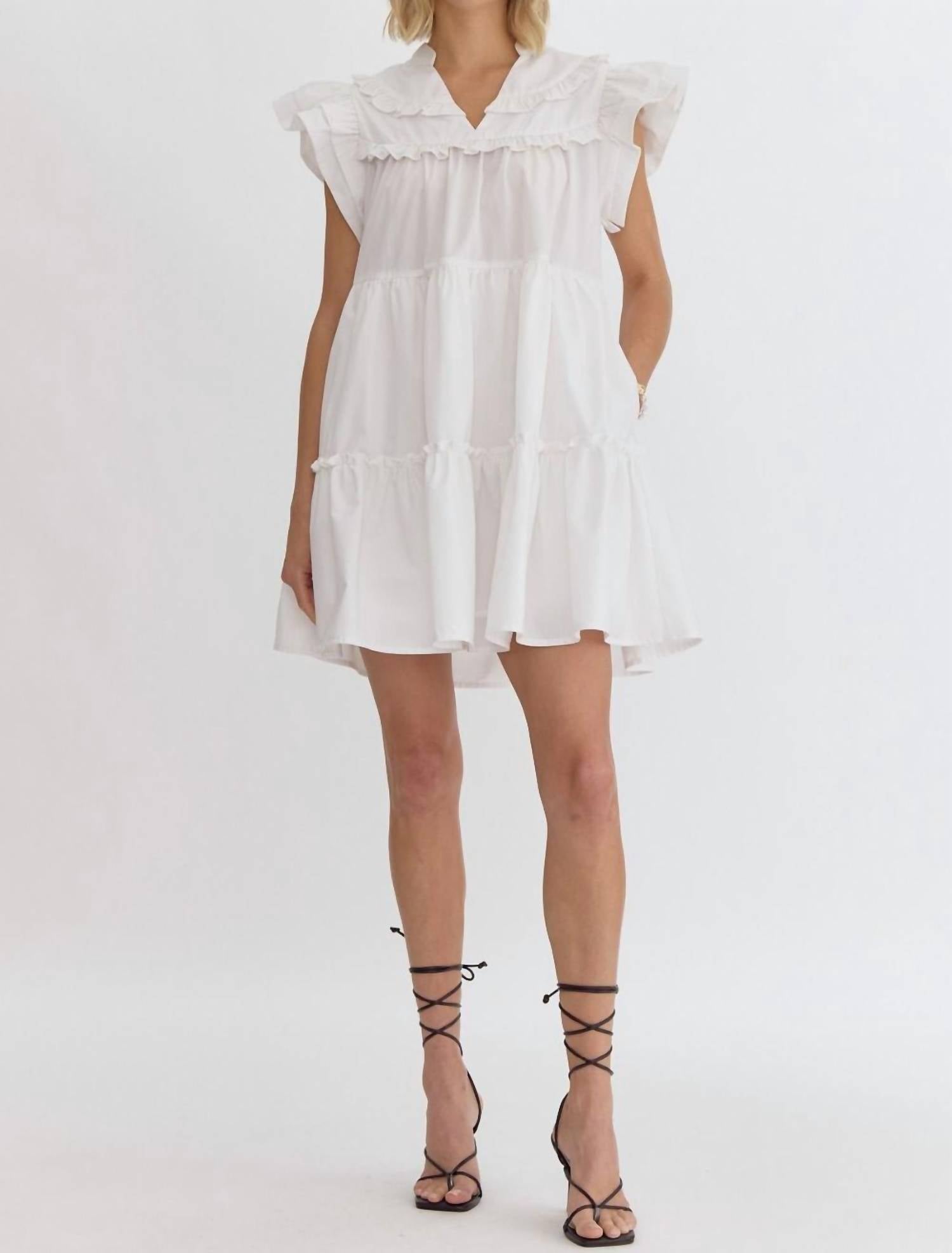 The perfect mini dress for those warmer months. Meet the Women's Bring Me Back Dress by Entro, a chic mini dress ideal for any spring vacation. This short sleeve dress features a V-neckline and ruffle sleeves, enhancing its boho chic appeal. Crafted from a 60% polyester and 40% cotton blend, the dress is lightweight, non-sheer, and includes practical side pockets. Closure: Pull on. Care: Machine wash.