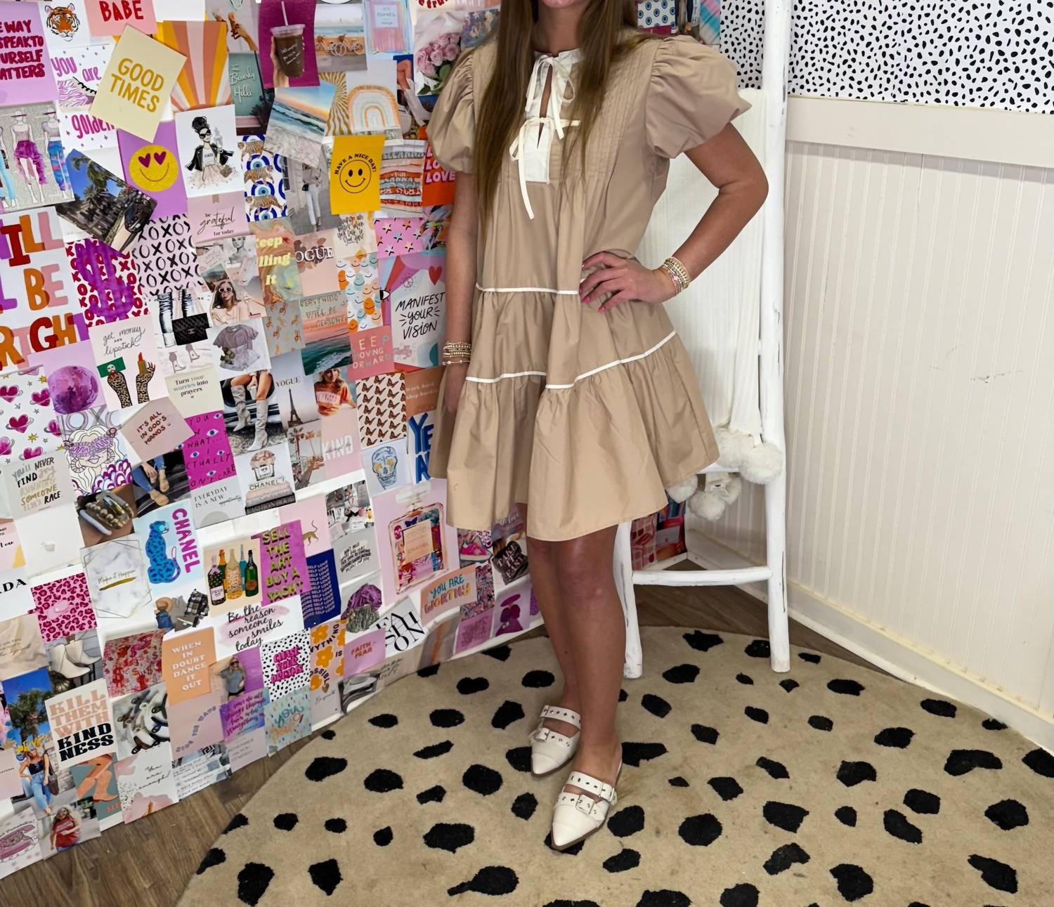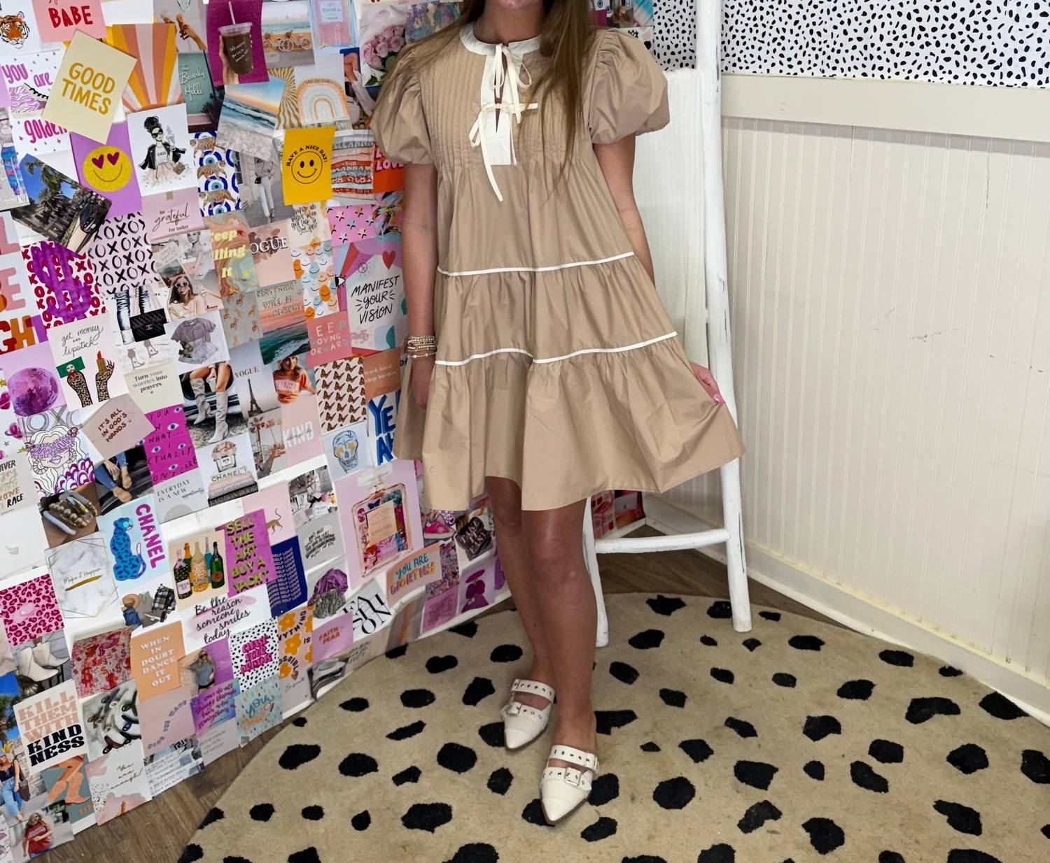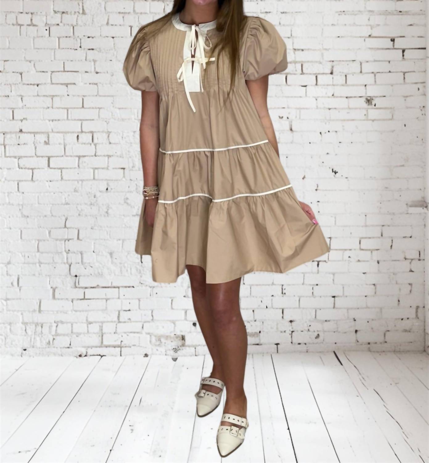 A short and breezy dress for those warmer days. Introducing the Women's Pintuck Bubble Dress by Entro in a charming lilac hue, perfect for your summer getaway. This mini dress features short bubble sleeves and a crewneck with a bow tie closure for added elegance. Crafted from a lightweight blend of 65% Polyester and 35% Cotton, its pintuck detailing and contrasting binding enhance the silhouette. The dress includes practical side pockets and is available in sizes S to L.