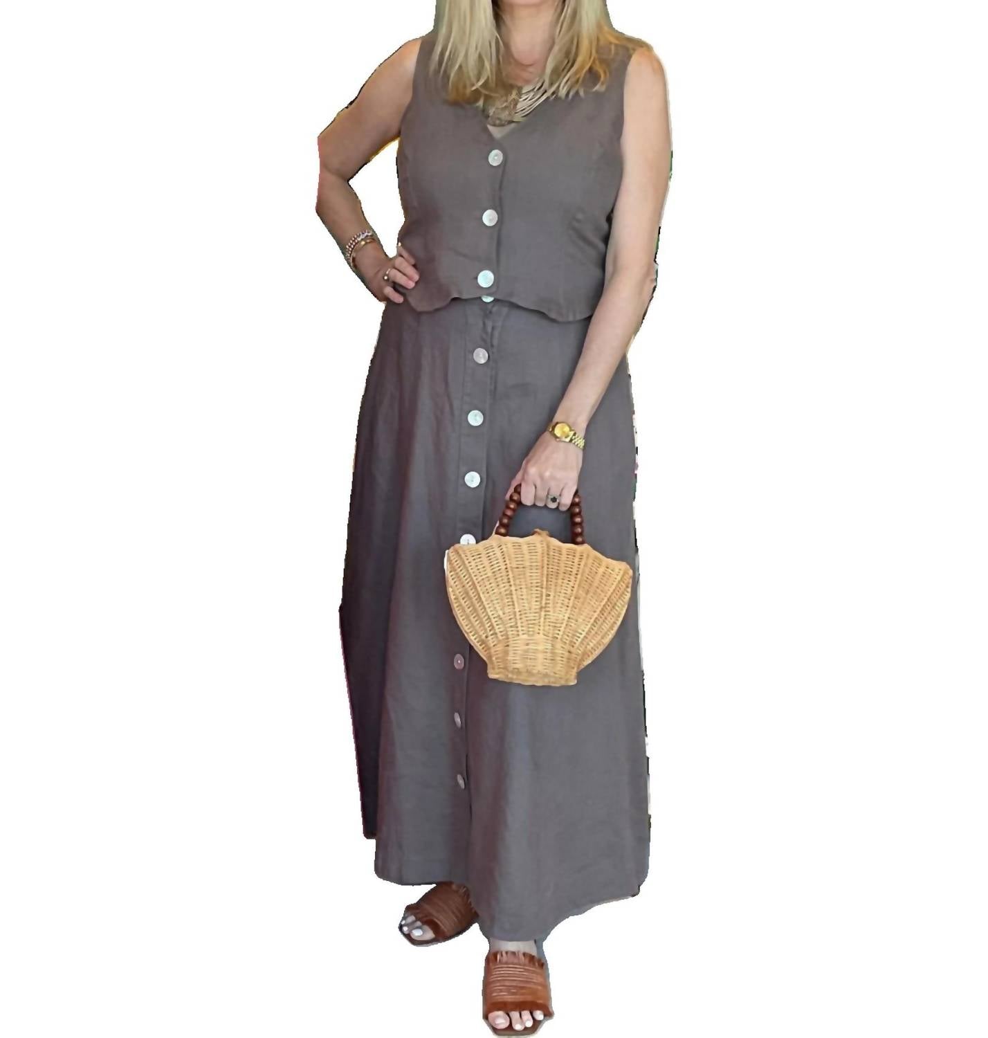 Who doesn't love a good maxi skirt? Chic addition to your fall workwear wardrobe. Crafted from premium linen with a cotton lining. Features a button front closure for a sophisticated touch. Designed with a stylish 18-inch length, perfect for travel and everyday elegance. Made in US. Easy to care for with machine wash instructions.