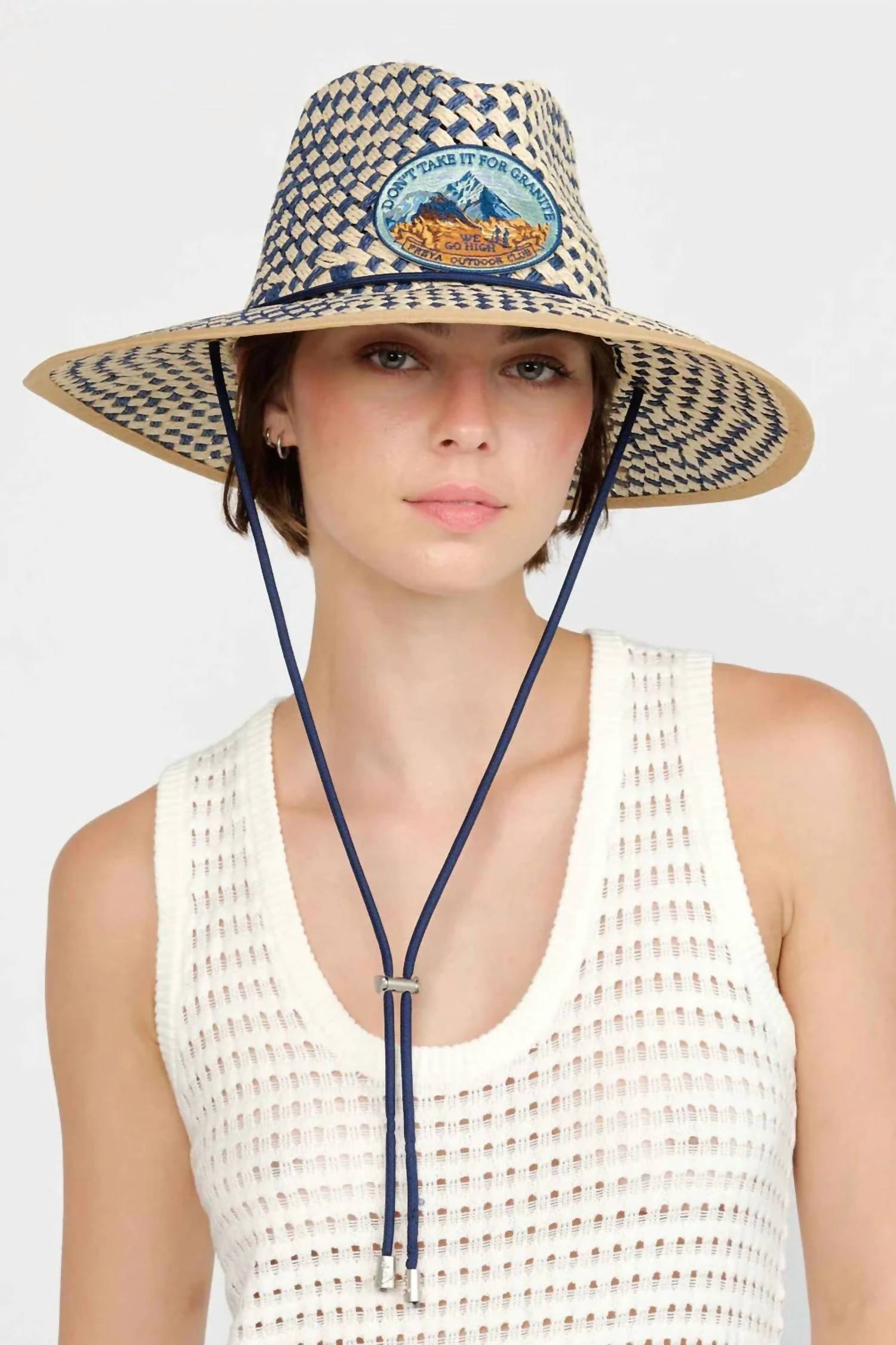 Block the sun in style with this adorable hat that will complement any outfit. Expertly crafted to elevate your style while providing a delightful touch of personality. Introducing the Women's Don't Take It For Granite Lifeguard Hat by Freya, a fun addition to your summer wardrobe. Crafted from sustainable paper-based straw, this quirky hat features an embroidered mountain patch and the playful slogan "Don't Take It For Granite." It comes with an adjustable navy chin strap with silver hardware for a secure fit. Available in a Small/Medium size (55 cm - 57 cm), this hat is a final sale item, ensuring no returns or exchanges.