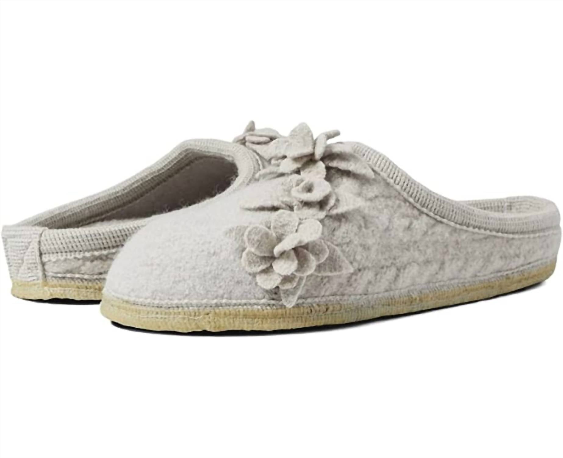 Step into comfort with the Women's Charisma Clogs by HAFLINGER, perfect for your winter vacation wardrobe. Crafted in a light gray hue, these clogs feature a round toe design and a flat heel, ideal for all-day wear. Whether for a casual outing or a relaxed day indoors, these mules promise both style and ease. Ideal for adult women seeking a chic yet functional footwear option.
