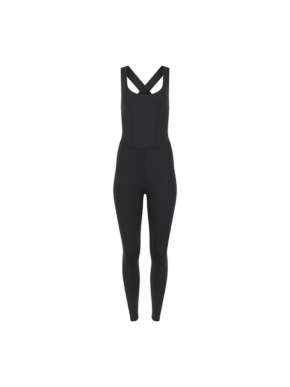 Discover the HEROS Unitard One-piece, a sleek and minimal design crafted for the ultimate workout experience. This black, sleeveless bodysuit, made from 83% recycled polyester and 17% spandex, boasts a snug form-fitting silhouette. Designed in the USA, it features a scoop neckline and a striking exposed back with signature strap detail, complete with hidden bra lining for added support. The Eco Tech fabric ensures eco-conscious comfort, while the tie closure offers a secure fit. Care: Wash cold. Model is 5'10" with a 28" inseam and 9" rise, wearing size S.