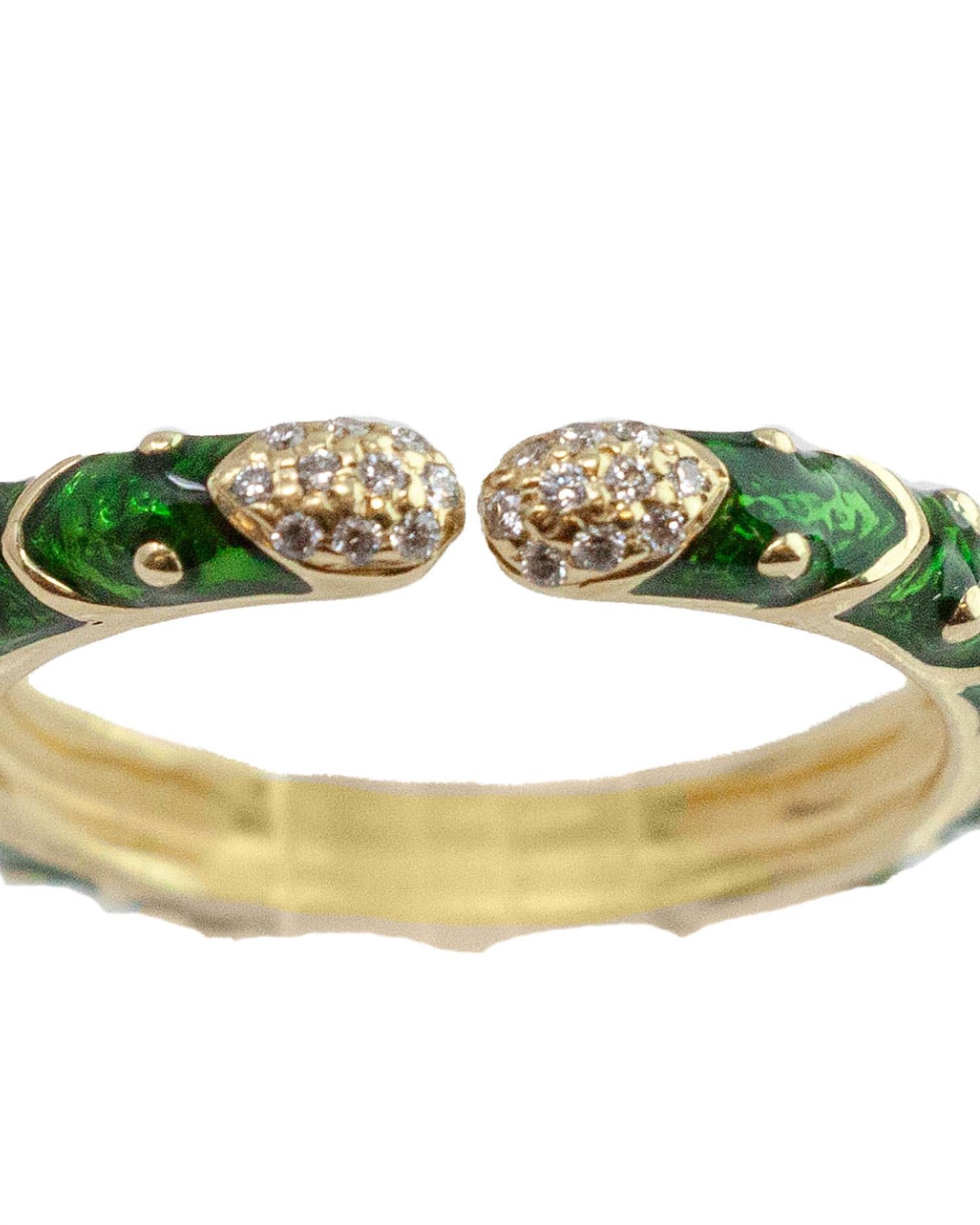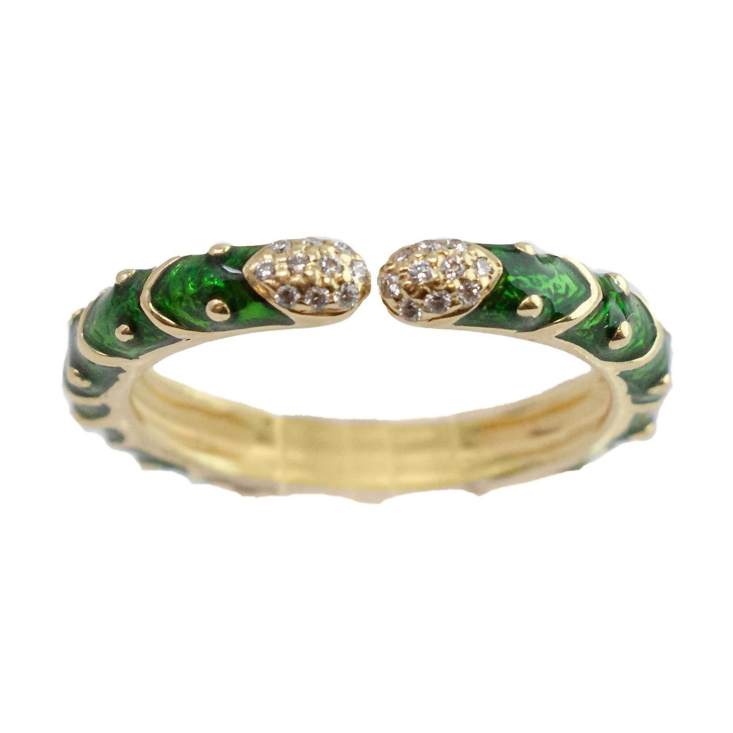The wear-everywhere ring that you won't want to take off. Introducing the Women's Enamel Diamond Ring by Hidalgo, an exquisite piece crafted in 18k yellow gold. This fashion ring is adorned with green enamel detailing, offering a vibrant and elegant touch. Embrace its luxurious design as a perfect complement to any outfit. Take center stage with this stunning accessory.