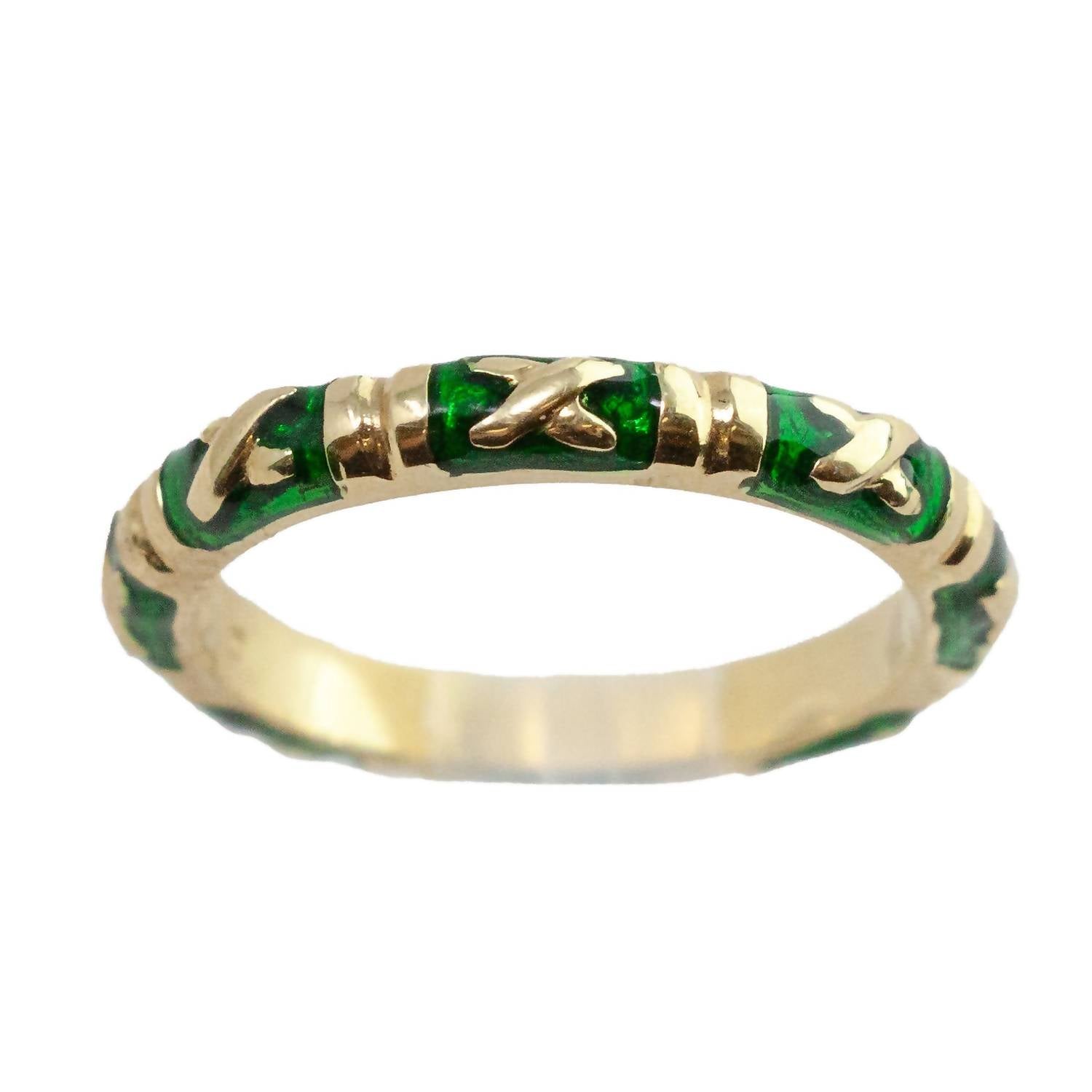 Wear this ring stacked or by itself... you can't go wrong. Introducing the Women's Enamel Ring by Hidalgo, a stunning fashion piece crafted in 18k yellow gold. This ring features a vibrant green enamel finish, adding a pop of color to your ensemble. Origin: Not specified. A perfect choice for those seeking both elegance and a touch of boldness.