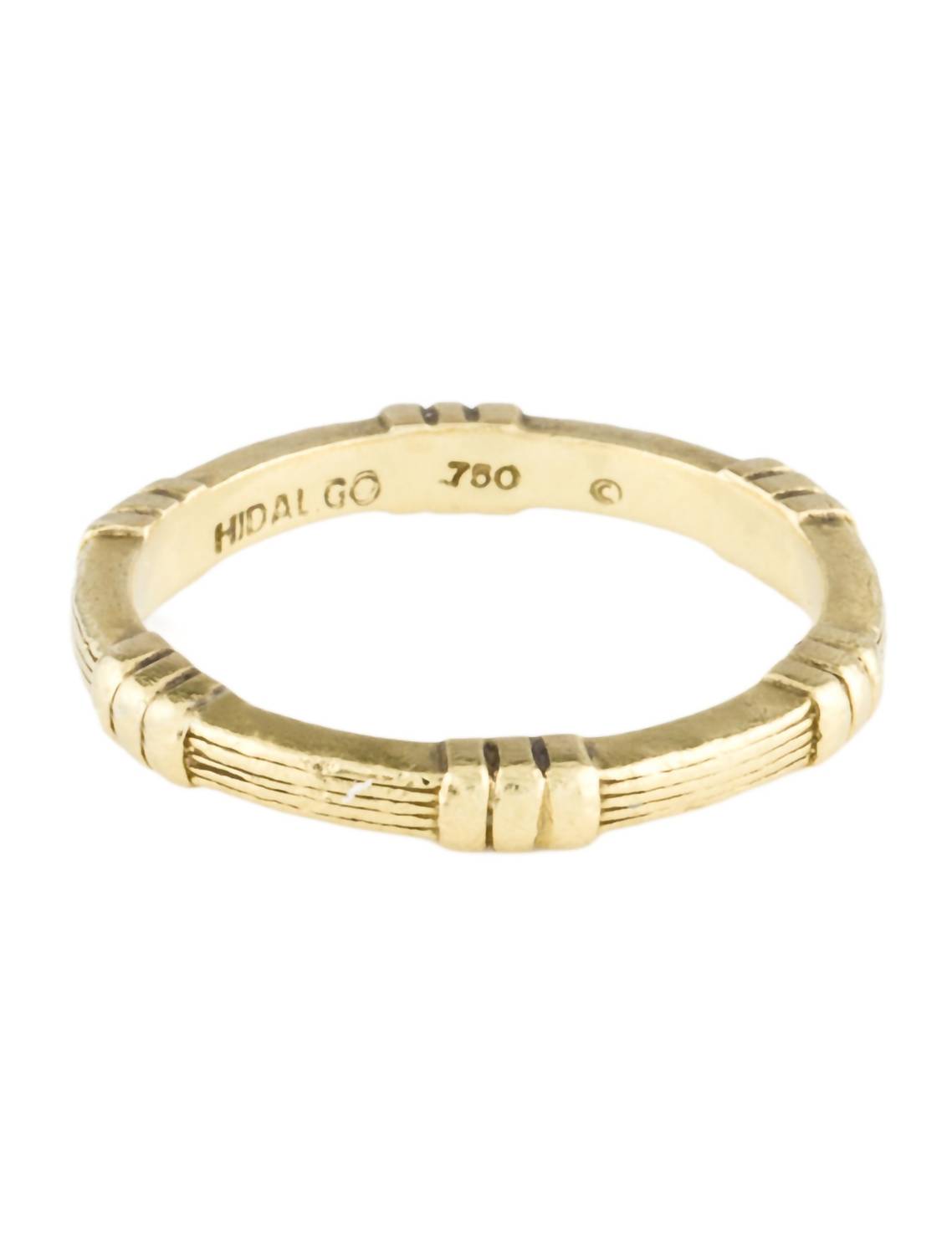 Elevate your elegance with the Women's Textured Ring by Hidalgo, crafted to perfection for a sophisticated touch. This fashion ring, designed in lustrous 18K Yellow Gold, features a band width of 2.8mm and carries a total item weight of 4.2g. Distinctively marked with "750" and the designer signature, it embodies both luxury and authenticity. A timeless piece that complements any ensemble, perfect for the discerning woman.