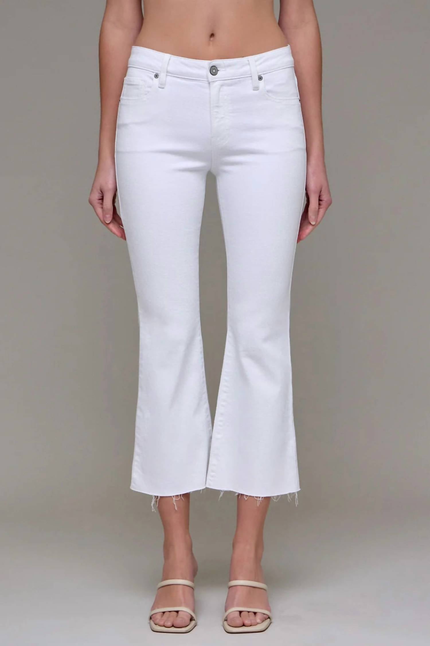 Discover the Women's Happi 25” Inseam Cropped Jeans by HIDDEN, perfect for your summer vacation wardrobe. These solid white, wide-leg jeans feature a 25-inch inseam and a convenient button closure. Designed with practicality in mind, they come with pockets, making them both stylish and functional. Add a touch of elegance to your look with these ankle-cropped essentials.