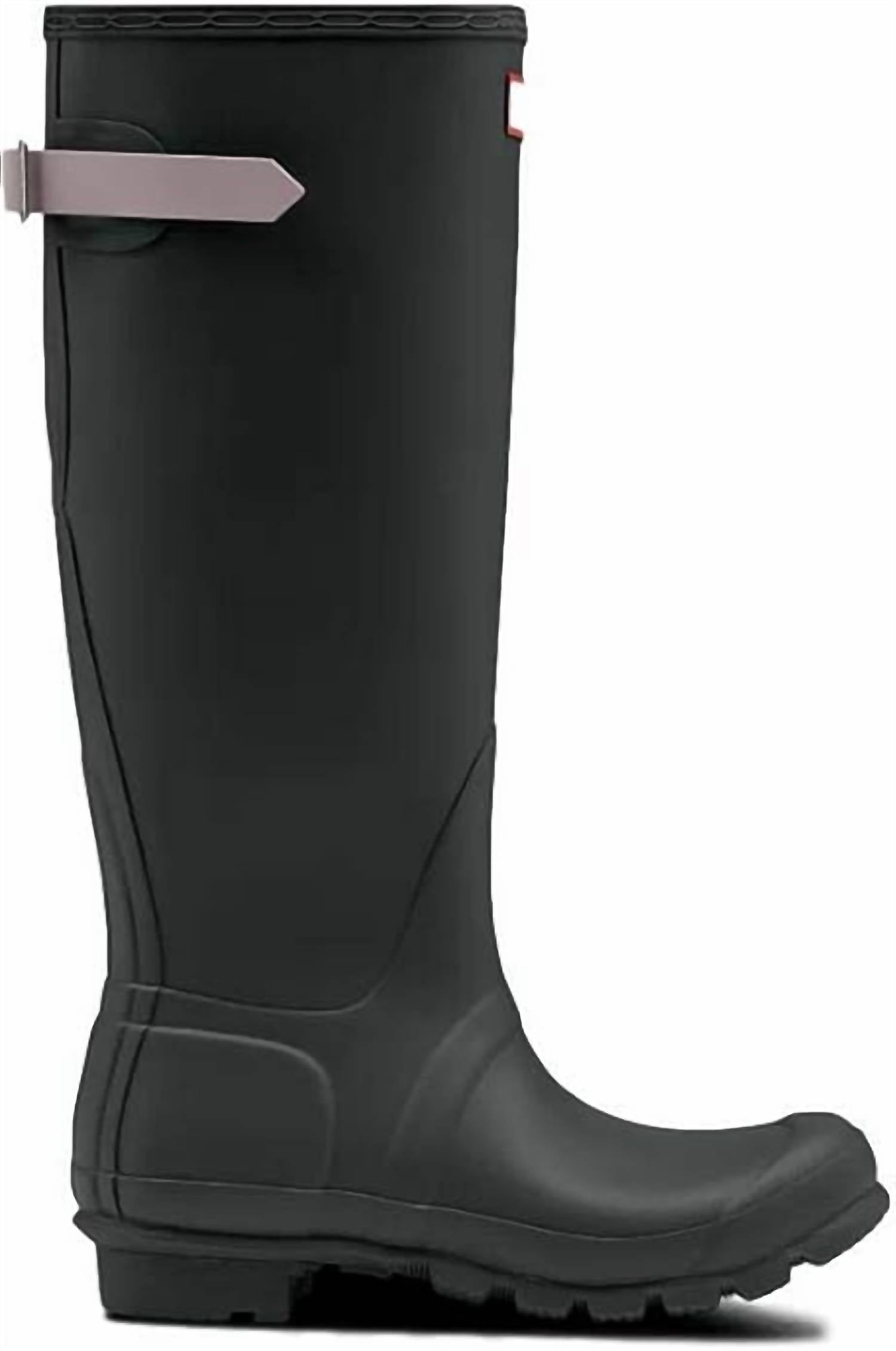Rainboots so cute, you'll want to wear these even on the lightest drizzle days. Introducing the Women's Original Back Adjustable Rain Boots by Hunter, a must-have for wet weather outings. Crafted from durable rubber, these boots feature a round toe shape that ensures comfort and style. Designed in a chic Firth/Atlantis color, these boots provide an adjustable fit for maximum convenience. Perfect for adult women, these winter and rain boots effortlessly combine functionality and fashion.