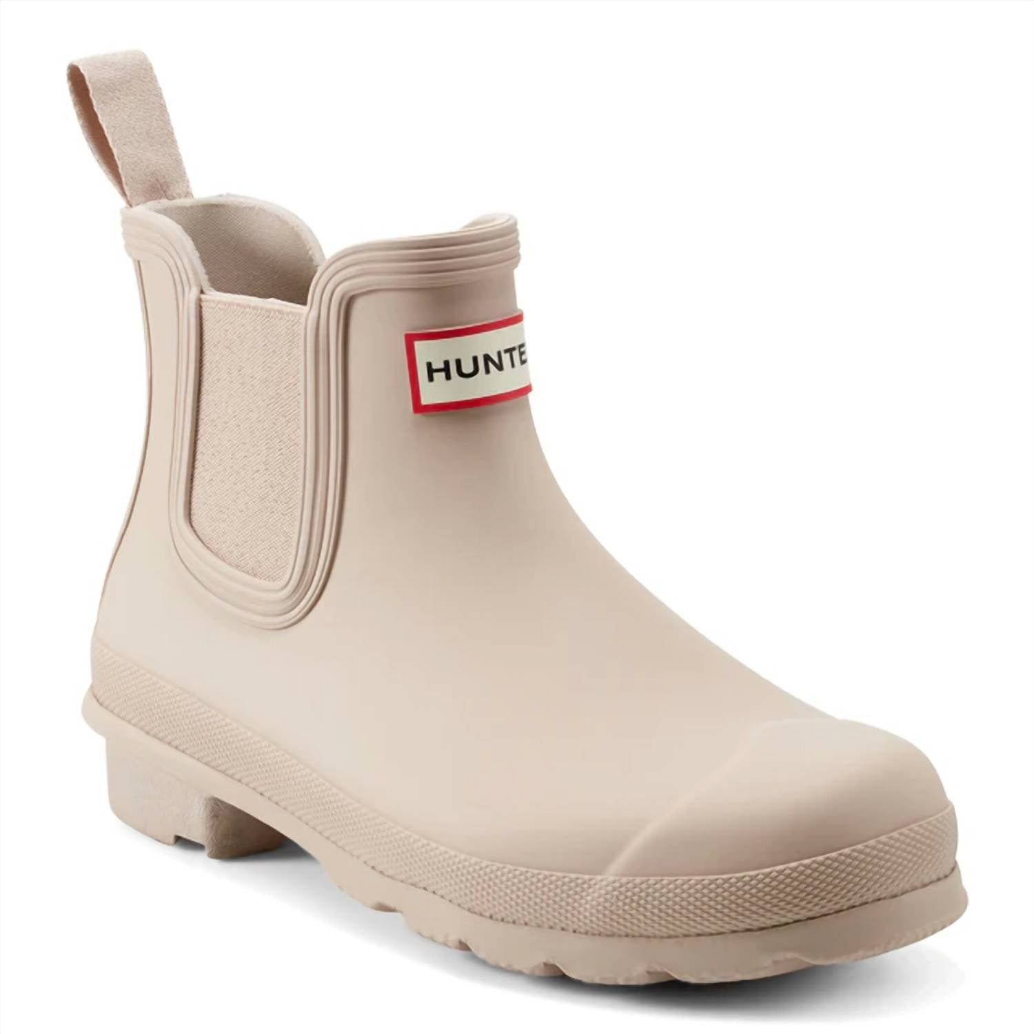 Rainboots so cute, you'll want to wear these even on the lightest drizzle days. Discover unbeatable protection with the Women's Original Chelsea Bootie by HUNTER, crafted in a sophisticated Light Natural hue. Made from vulcanized natural rubber, these boots are waterproof and easy to maintain, ensuring you stay dry and stylish in any weather. Featuring a comfortable round toe and a practical flat heel with a height of 0.5 inches, these booties offer dynamic flexibility and superior movement, making them perfect for an active lifestyle. Enjoy cushioned comfort with Hunter's technology that absorbs shock and provides long-lasting support.