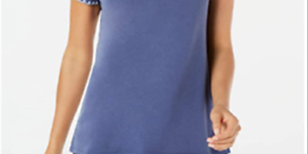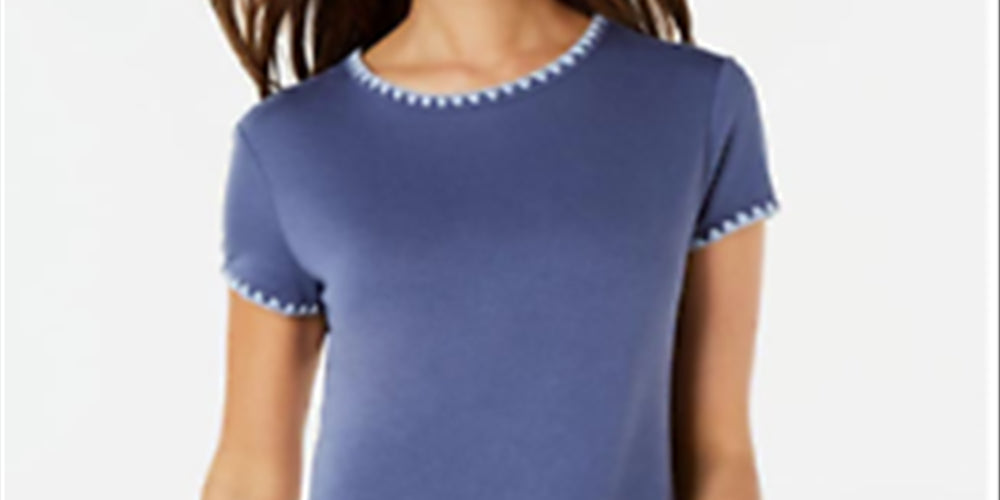 Ideology Women's Blanket Stitch Drop Hem T-Shirt Blue Size Small