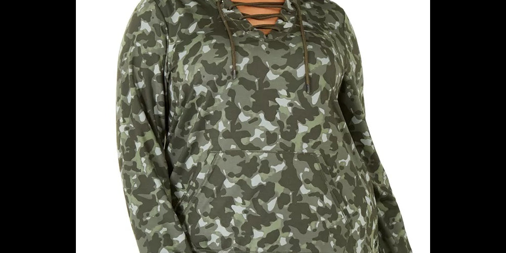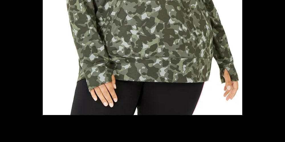 Ideology Women's Camouflage Warm Up Hoodie Green Size 2X