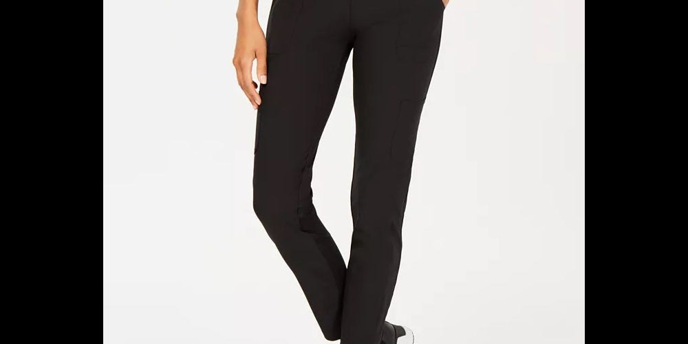 Mid rise; full length: approx. inseam 30"; semi-fitted|INSPIRED FOR: Athleisure|Utility pockets at front; patch pockets at sides|Polyester/spandex|Machine washable