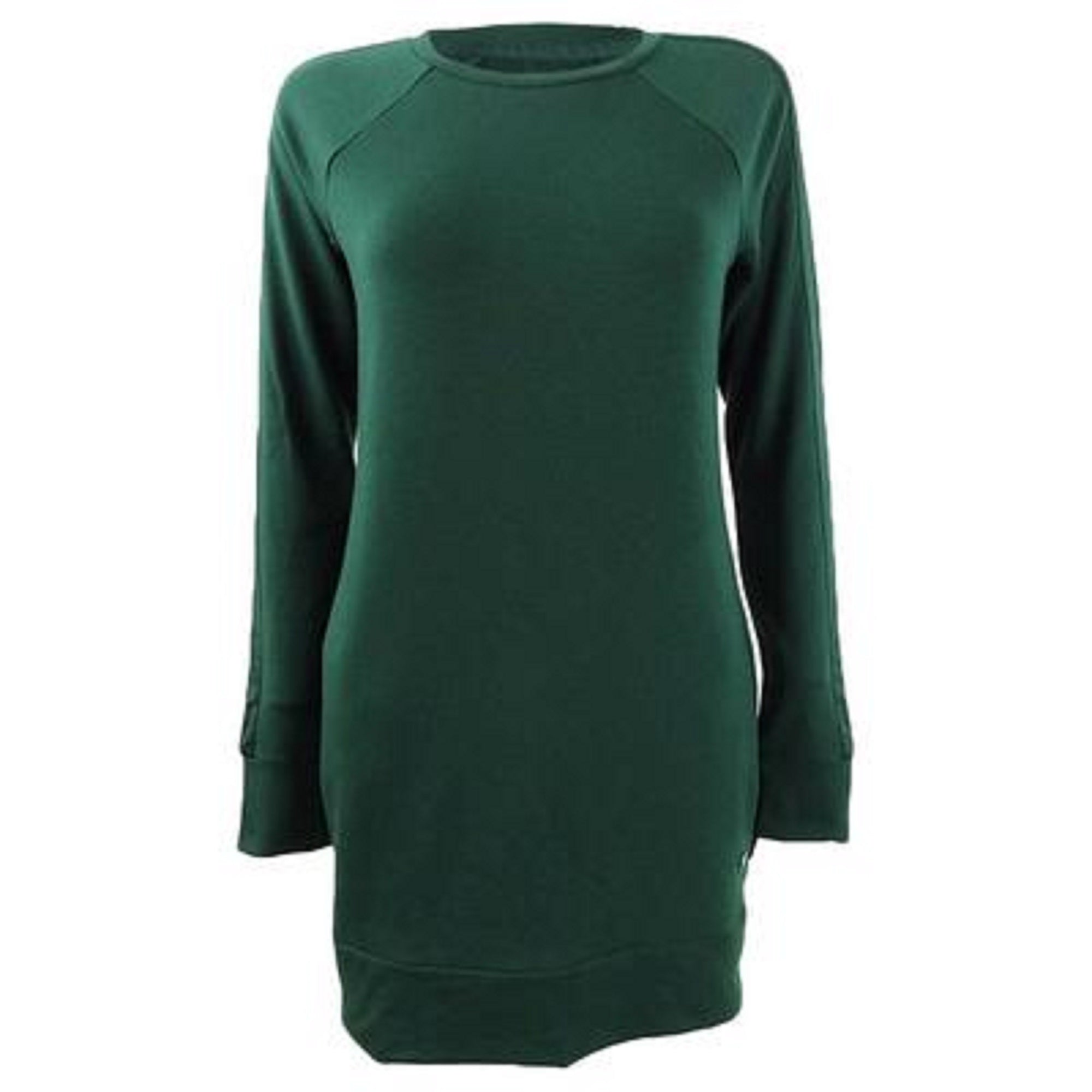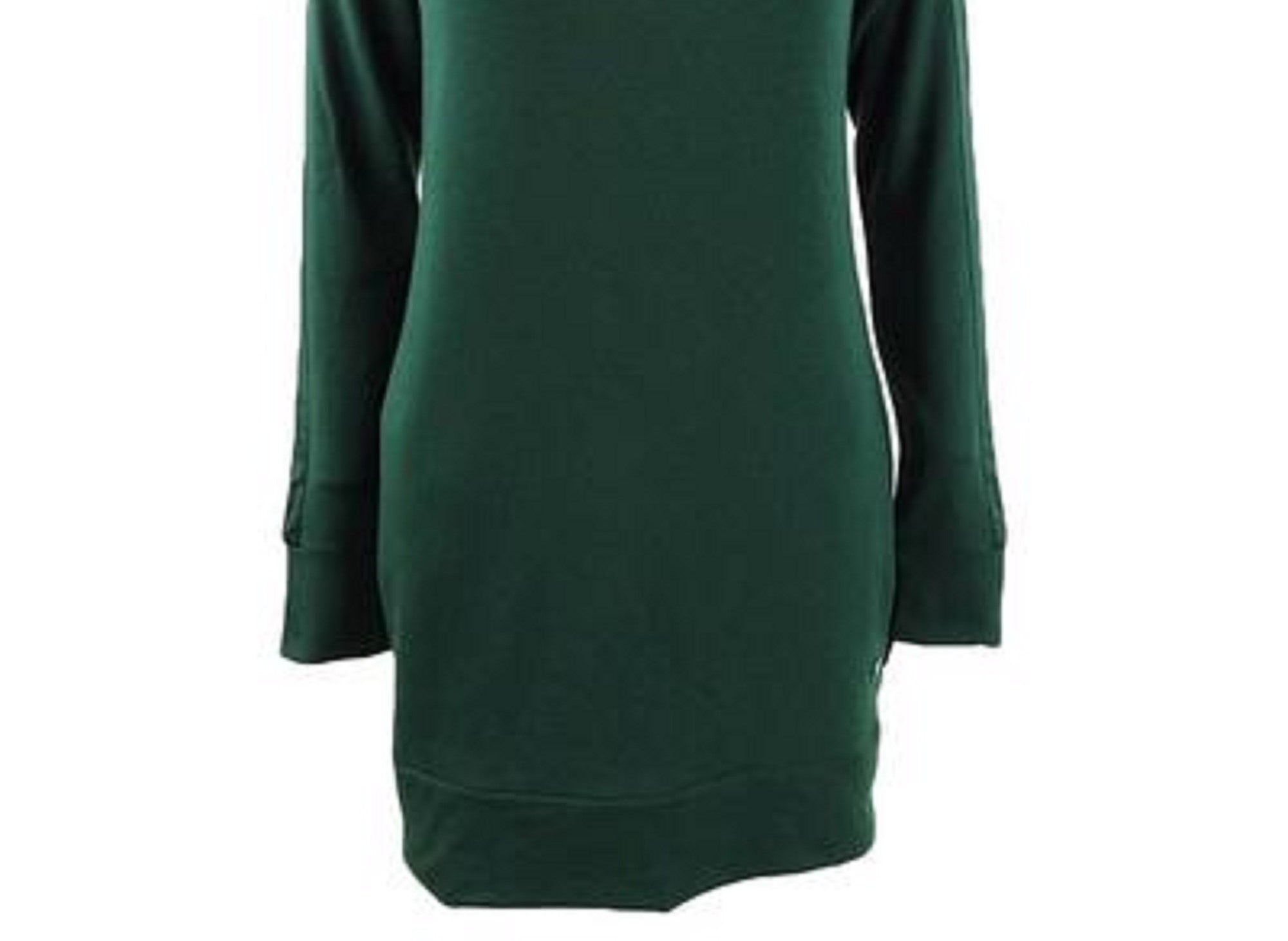 Approx. 32" long; semi-fitted|French terry|Scoop neckline; long raglan sleeves with tonal stripes; pockets at sides|Polyester/rayon/spandex|Machine washable