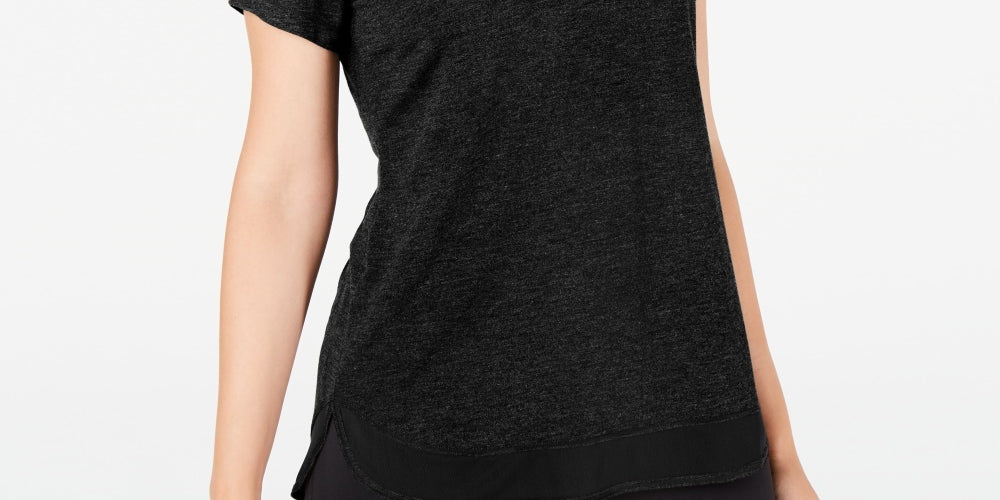 Ideology Women's Mesh Hem T-Shirt Black Size X-Small