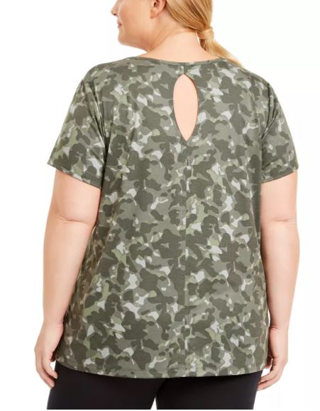 Ideology Women's Printed Keyhole Top Green Size 3X