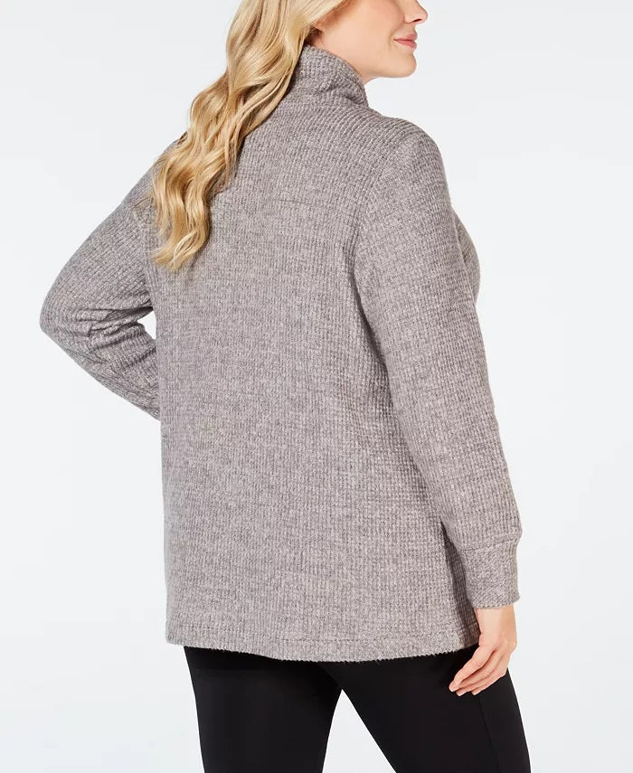 Hits at hip with tulip hem; semi-fitted|Cowl neckline with drawstring|A cowl neckline bring studio-to-street chic to this soft top|Cowl neckline with drawstring