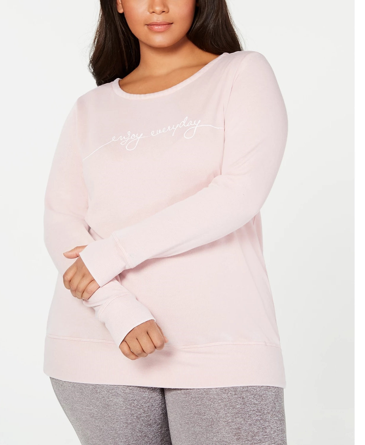 Ideology Women's Plus Graphic Strappy Back Top Pink Size 1X