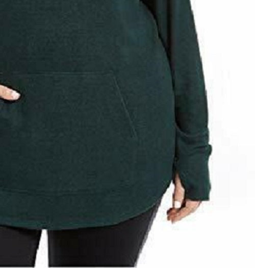 Ideology Women's Plus Size Thumb-Hole Hoodie Green Size 1X