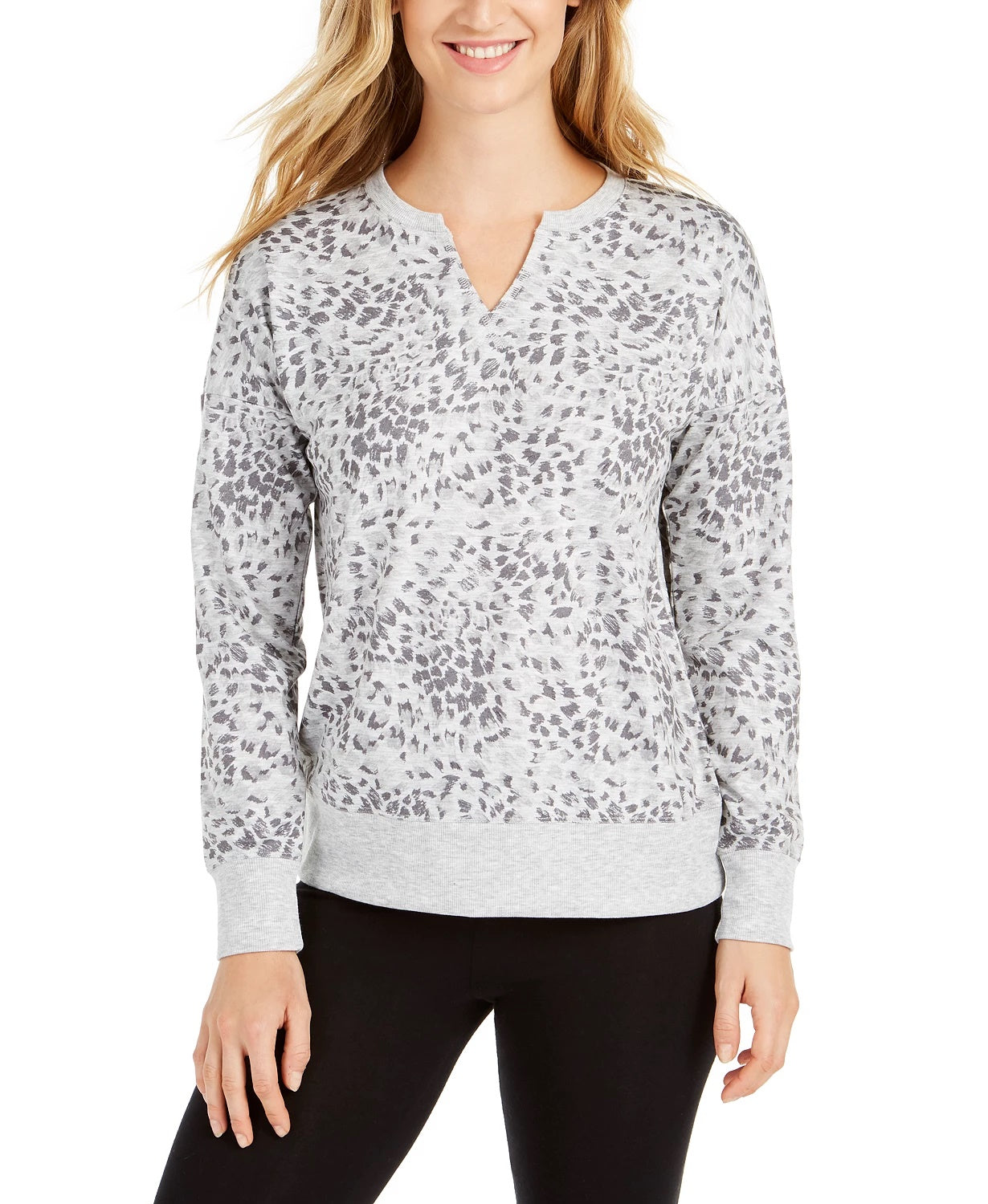 Ideology Women's Printed Split-Neck Top Gray Size Large