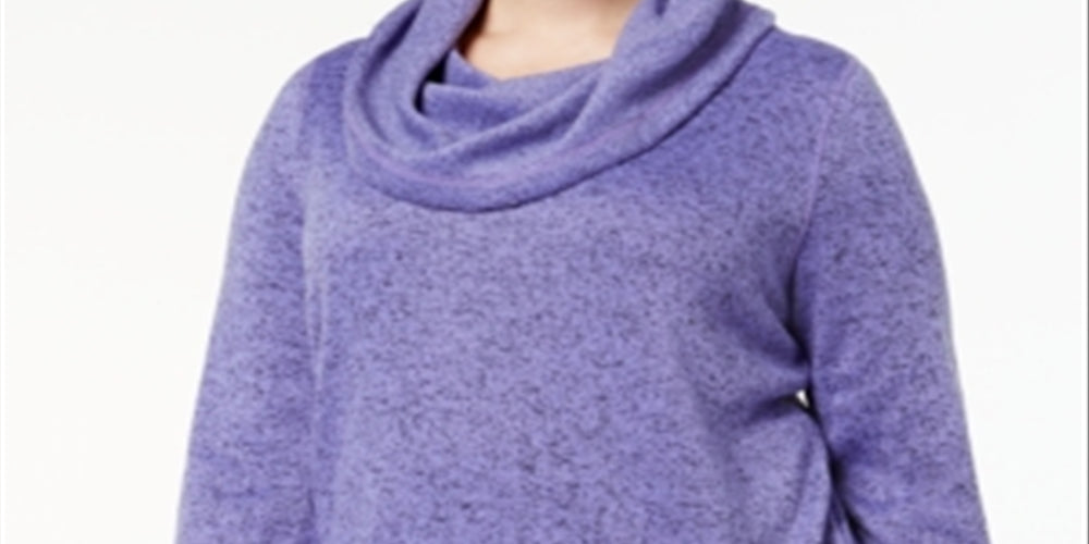 Ideology Women's Solid Long Sleeve Cowl Neck Trapeze Sweater Purple Size 2X