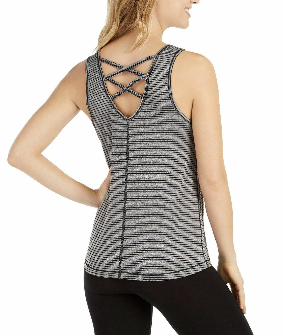 Strappy back|INSPIRED FOR: Athleisure/yoga/walking|Scoop neckline|Polyester/spandex|Machine washable