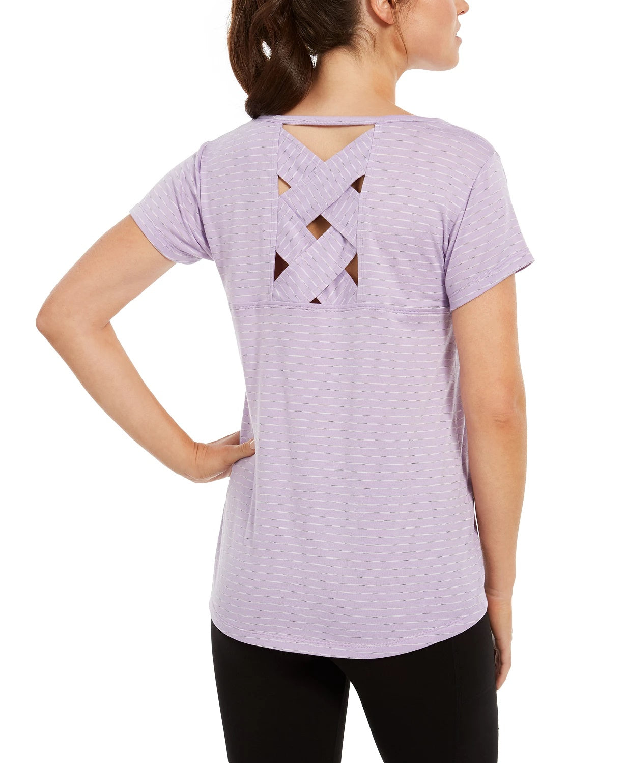 Semi-fitted; lattice detail at back|INSPIRED FOR: Yoga/athleisure|Scoop neckline|Polyester/rayon/spandex|Machine washable