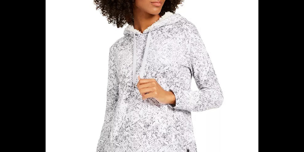 Semi-fitted|French terry|Lined drawstring hood; kangaroo pocket; rounded hem|Polyester/rayon/spandex; drawstring; hood lining; polyester
