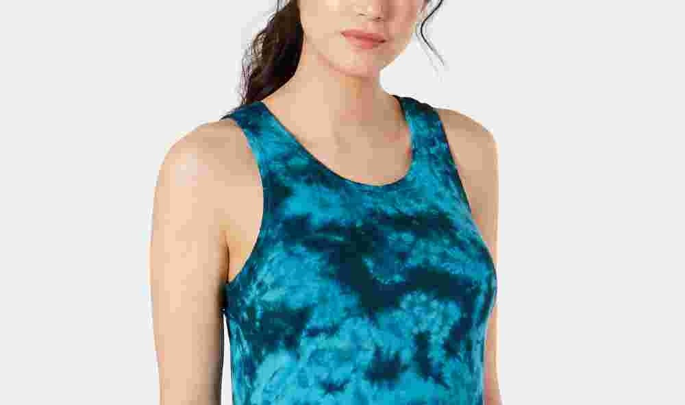 Hits at hip; semi-fitted; lattice detail at back|INSPIRED FOR: Athleisure/Training|Scoop neckline|Rayon/elastane|Machine washable