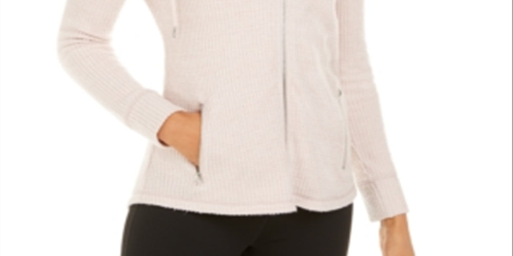 Ideology Women's Zippered Long Sleeve Hooded Top Pink Size Large