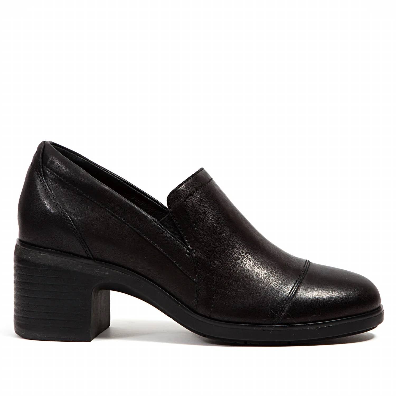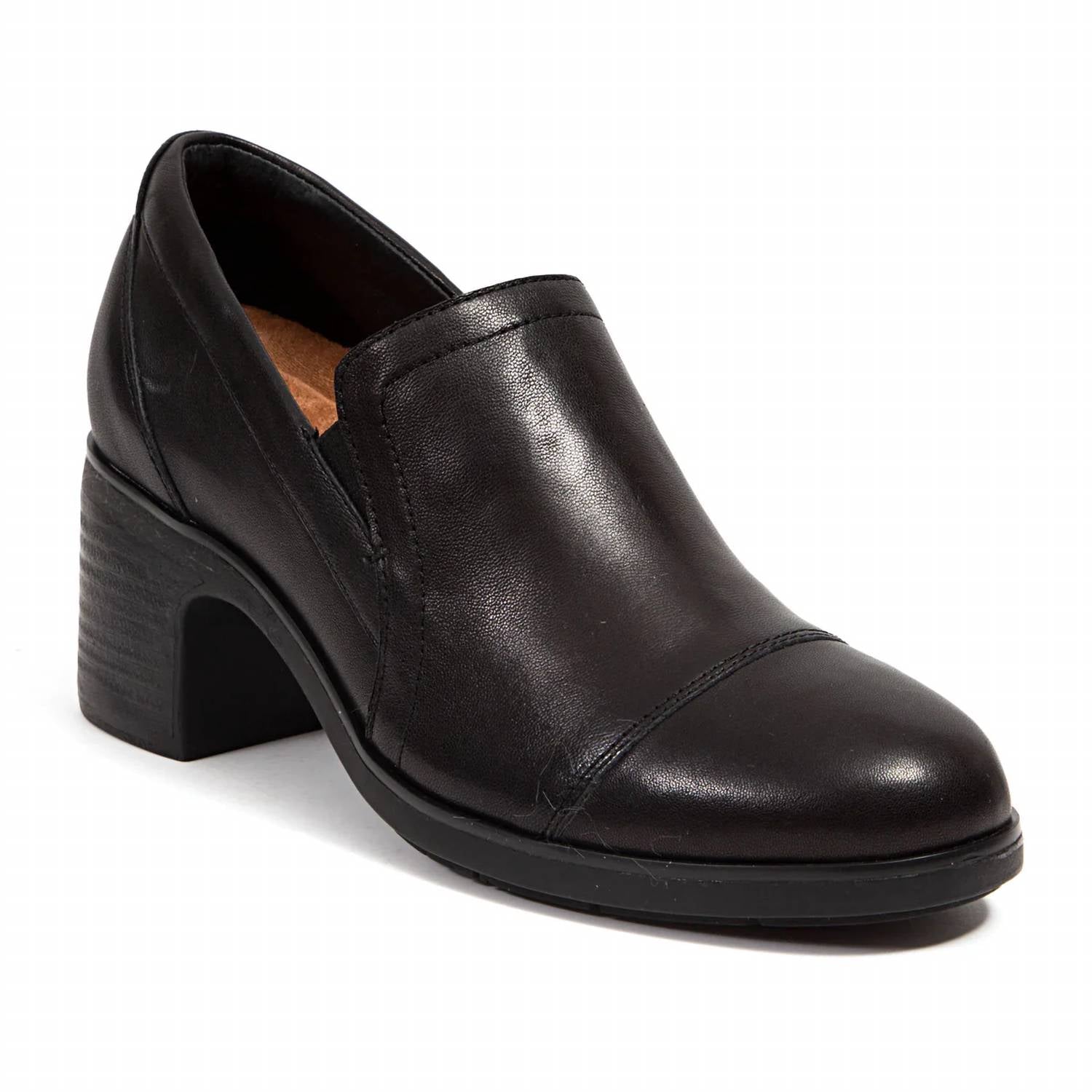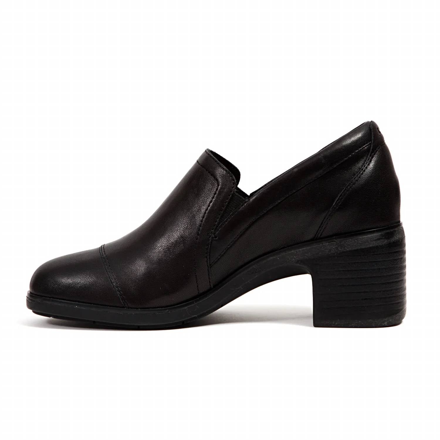 Step into elegance. Crafted from premium leather. Feature a contoured insole for superior comfort, flexible rubber outsole, and mid-height block heel at 2.25 inches for added height. Combine the classic loafer look with modern comfort features. Designed with a round toe.