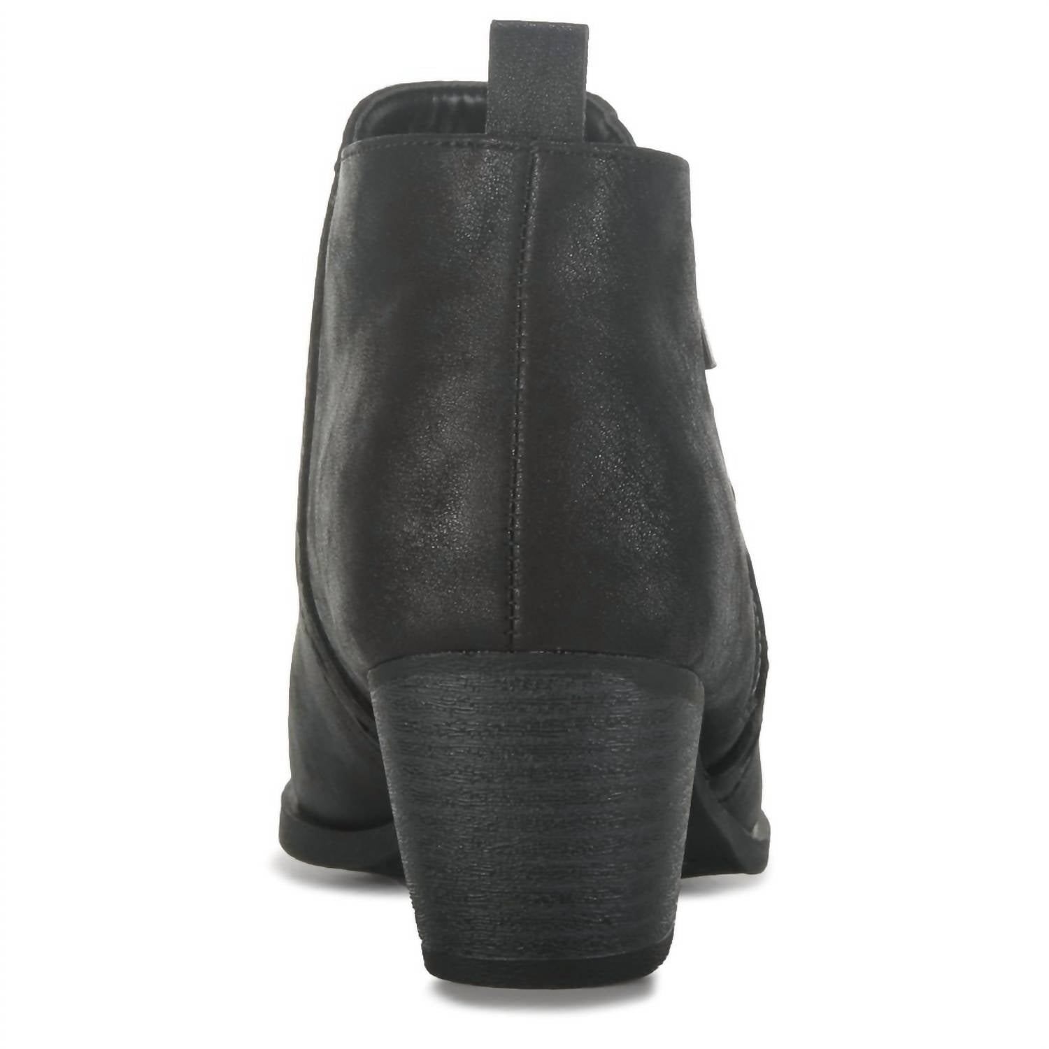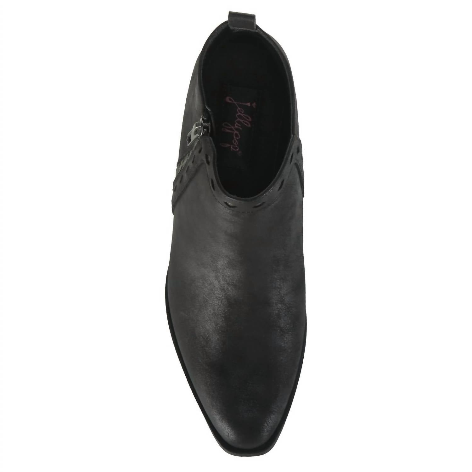 Say hello to the perfect, most versatile boot. The ankle height makes this style easily transition from day to night. Wear them with your favorite skinny jeans and tee for a more laid back look, or pair them with your favorite mini dress and jacket for a night out on the town. Step into style with the Women's Zina Ankle Boot by Jellypop, featuring a chic black faux leather upper and an almond toe design. These ankle boots are a perfect blend of fashion and comfort, offering a smooth lining and padded insole for all-day wear. The convenient side zipper closure ensures easy on and off, while the durable synthetic outsole boasts a fashionable 2.125" block heel. Diamond cut-out details around the stitching add a touch of elegance.