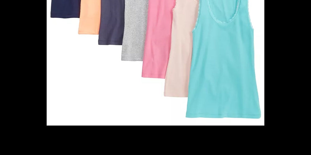 Length; Hits at hip|Special Features; Scalloped lace trim at neckline and sleeves; racerback styling|Neckline; Scoop neck|Closure; Pullover styling|Sleeve Length; Sleeveless