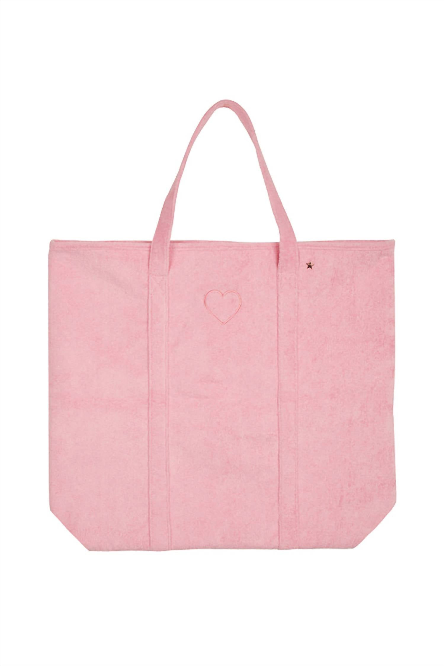 The carry-all tote bag of the season. Get in vacation mode with this perfectly sized tote bag that is the perfect accessory for beach days, pool parties, or sunset dinners. Discover the Women's Mykonos Tote Bag by Jocelyn, a versatile, must-have tote for all your adventures. Crafted from vibrant pink Terry cloth, this bag features a chic imprinted heart, making it perfect for errands, beach outings, and more. Its spacious design effortlessly accommodates all your essentials.
