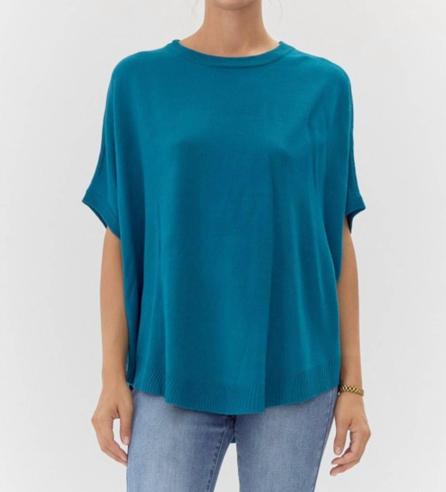 Look no further, you just found your perfect tee! Introducing the Dolman Sleeve Knit Top by Jodifl, a stylish piece in vibrant teal that elevates any spring wardrobe. This solid colored top features short, half dolman sleeves with a flattering U-neck and a chic curved hemline. Crafted from 100% acrylic material, it offers a lightweight, non-sheer fit perfect for a baby shower or casual outing. Closure: Pull On.