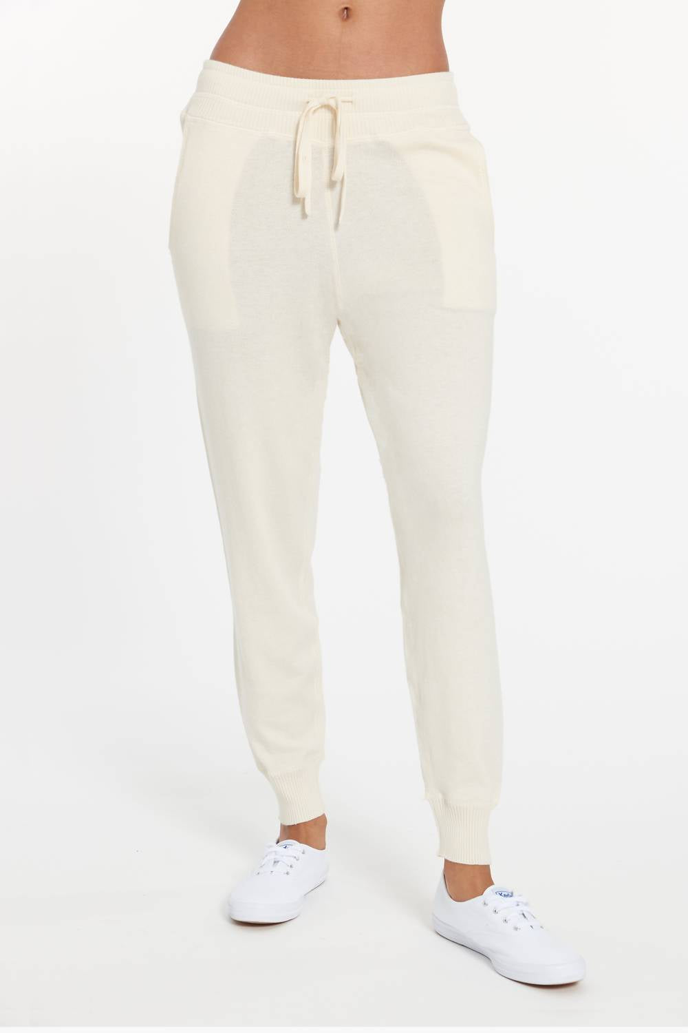 Embrace comfort with style in the Women's Nevis Jogger by LEIMERE, coming in a chic Antique White shade. These 7/8 length joggers, with a drawstring waist and pockets, offer a laid-back vibe perfect for game days. Crafted from a luxurious blend of 50% Modal, 25% Cotton, 15% Nylon, and 10% Cashmere, they ensure a soft touch and cozy fit. Care instructions recommend hand washing and laying flat to dry, though machine wash on a gentle cycle and tumble dry low is also suitable. The model, standing at 5'10", wears a size small with a 25" inseam, giving you an idea of its elegant ankle-skimming design.