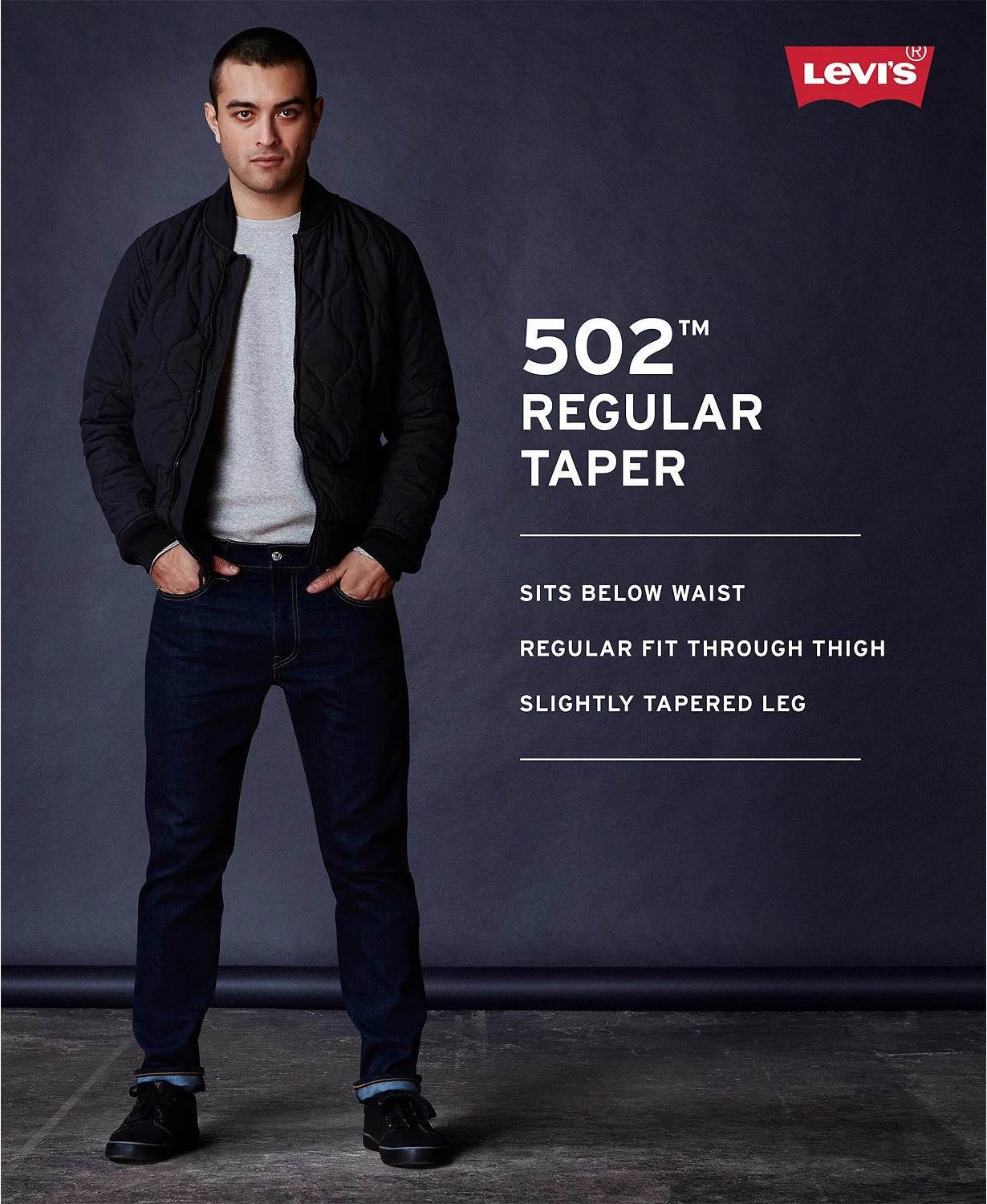 Zip fly with button closure; belt loops|Tapered leg|Five-pocket styling|Available in select washes. Levi's® is serious about saving water - with 50% of their products now made with Water Less™ techniques, more than 1.8 billion liters of water saved, and 129 million liters of water recycled