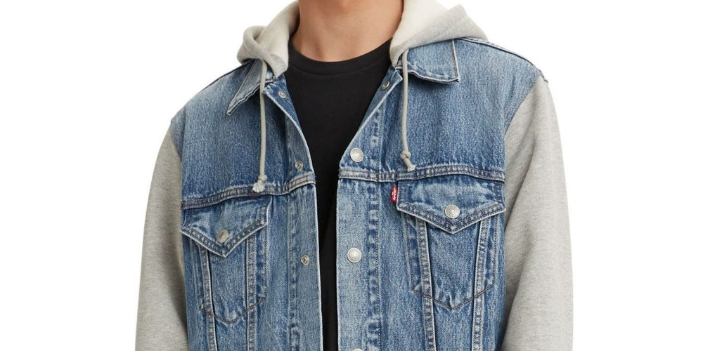 Pointed collar| front button placket|Denim| non-stretch|Drawstring hood|Arcuate button-flap chest pockets| welt hand pockets