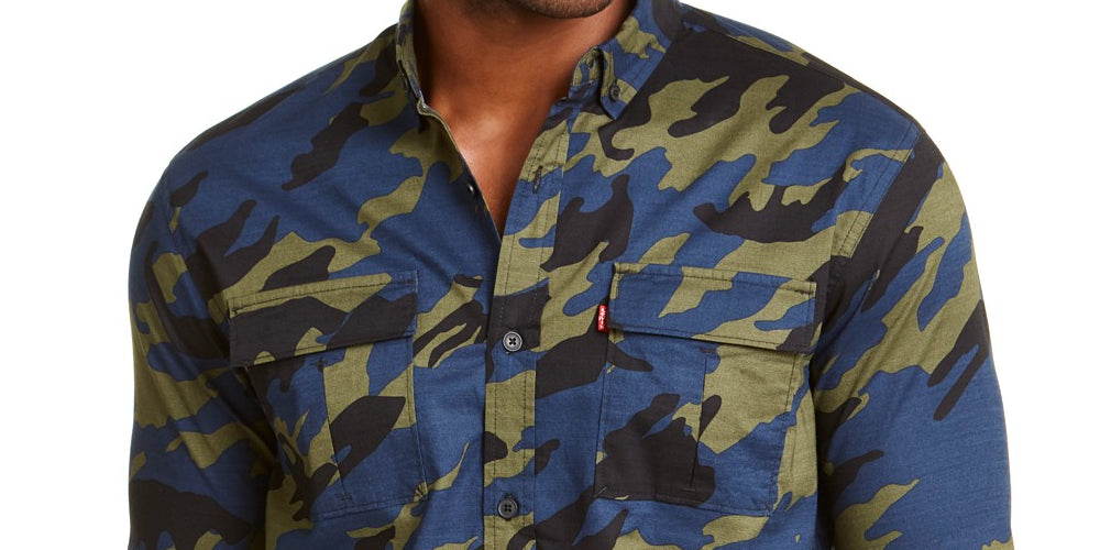 Levi's Men's Newski Camouflage Shirt Dark Green Size Extra Large