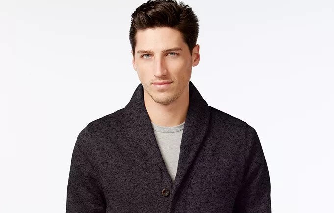 Sweater knit fleece cardigan|Shawl collar|5 button closer|Inner chest pocket|Polyester|Machine washable|Imported
