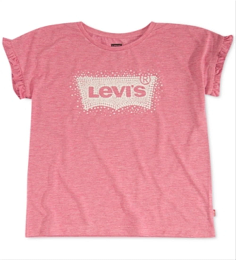 Levi's sporty T-shirt sparkles throughout for that fun style she would love to pair with her favorite leggings or jeans| Ruffles at each sleeve complete the look|