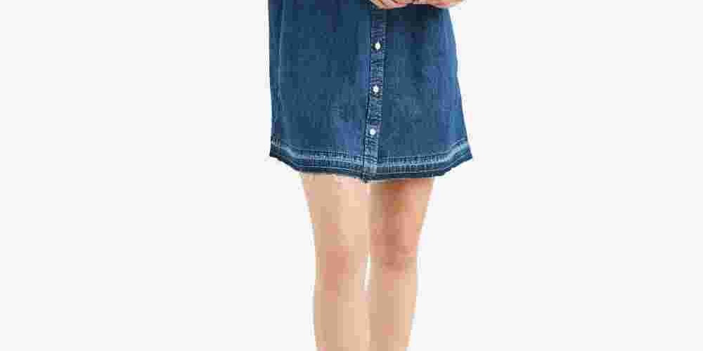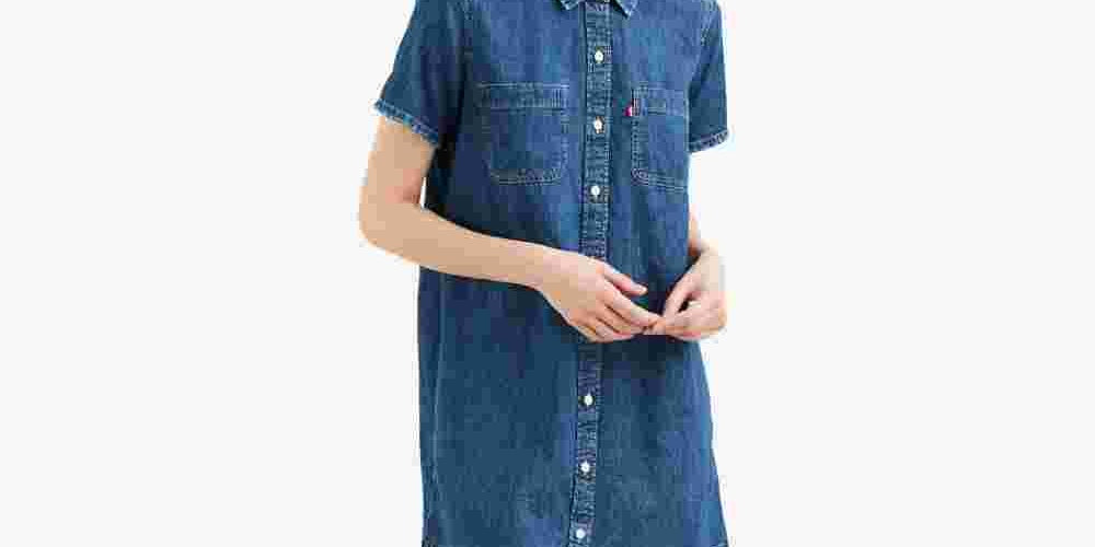Short length; shift silhouette|Point collar; front button closures|Released, unfinished hem|Patch pockets at chest|Unlined