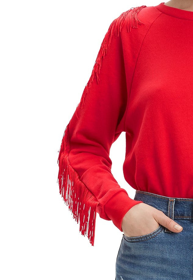Fringe on sleeves|Crewneck|Fringe details on the sleeves.|Fringe on sleeves