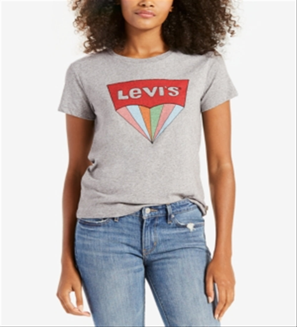 Levi's Women's Perfect Graphic Logo T-Shirt Gray Size X-Large