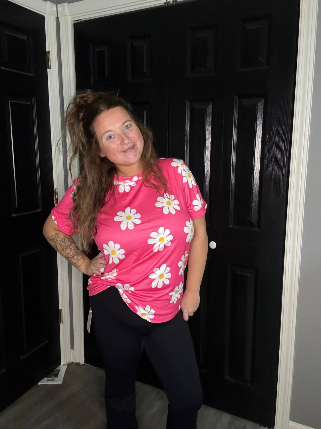 This casual tee features a daisy print and a classic crew neck design. It has short sleeves and a relaxed fit, ensuring comfort and breathability for fall weather. Made from soft materials, it’s easy to pull on.